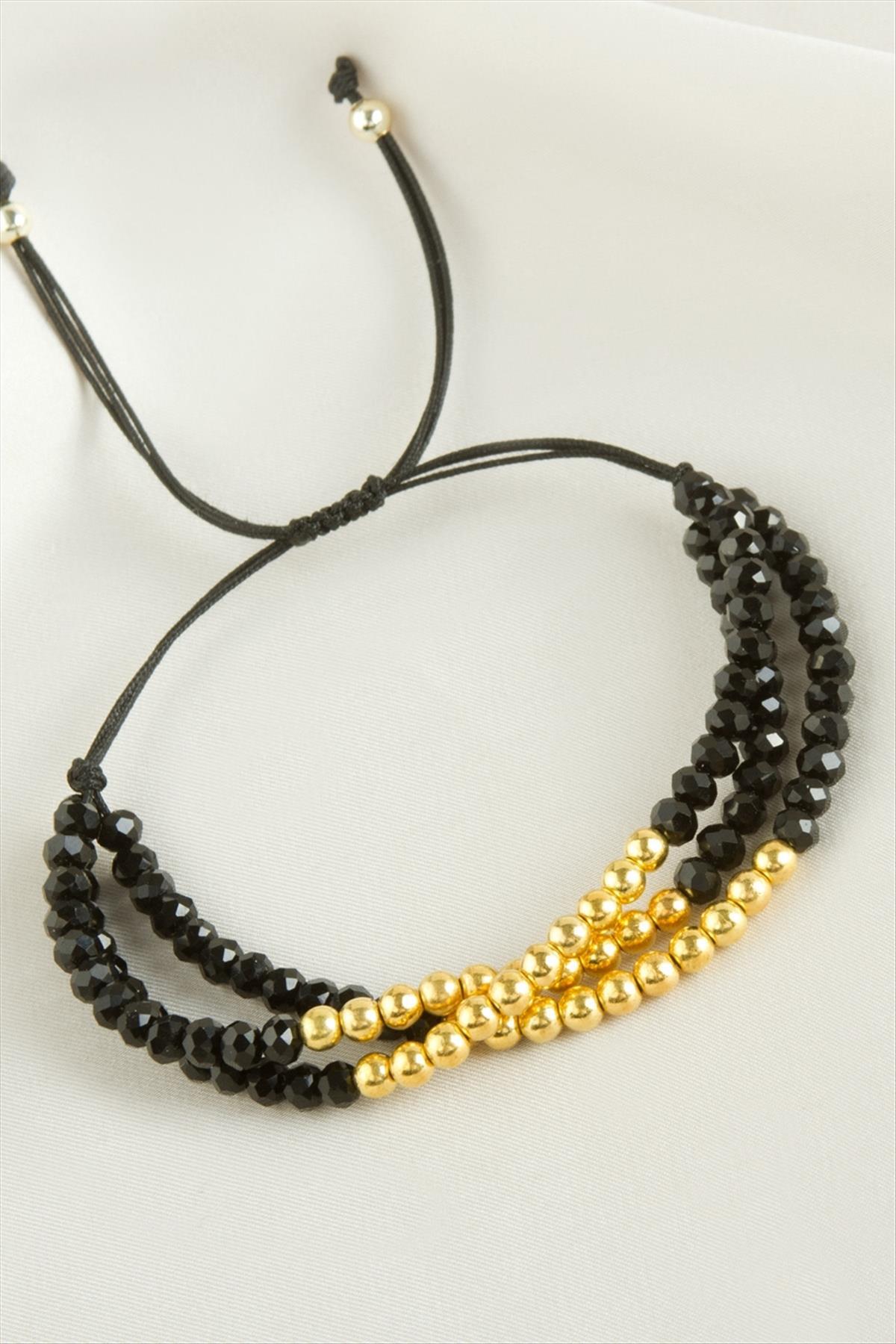 Top Metal Üçlü Kristal Bileklik-Siyah