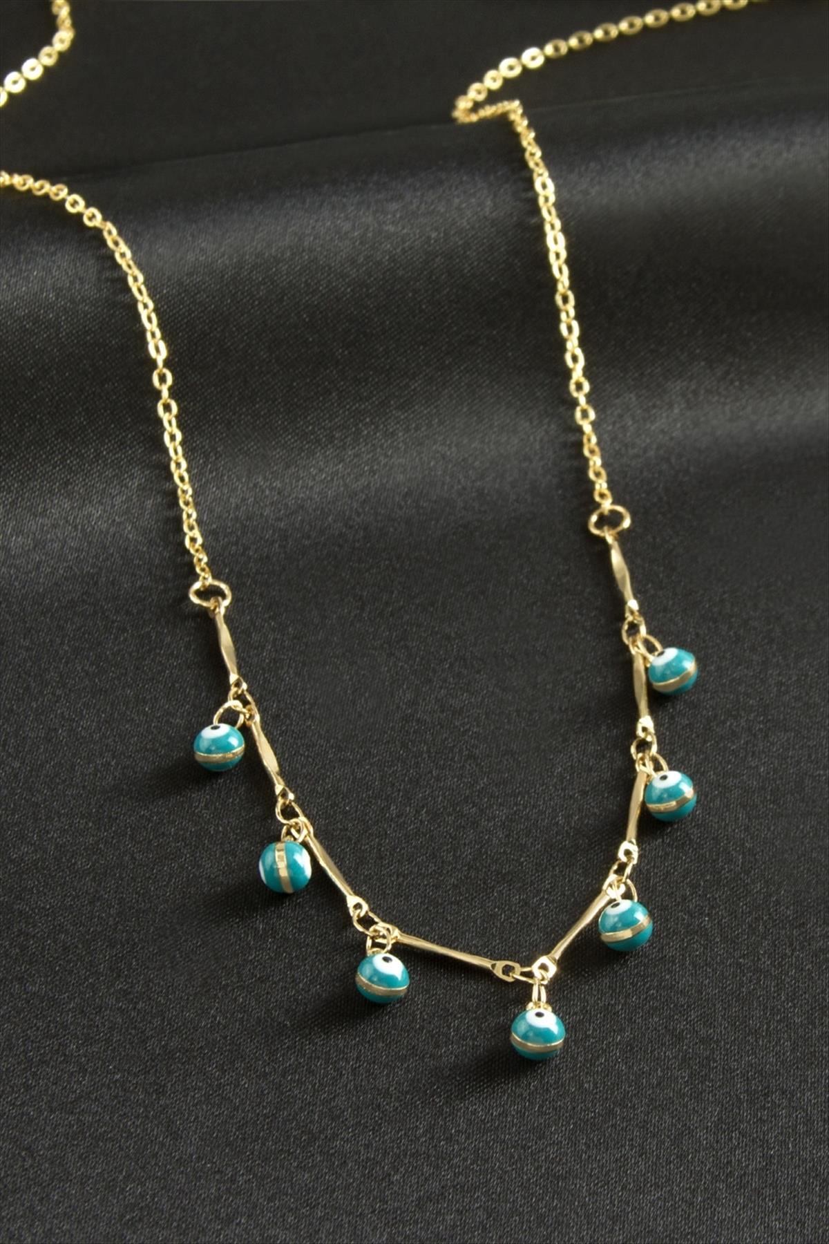 Top Nazarlı Mineli Kolye-Turkuaz