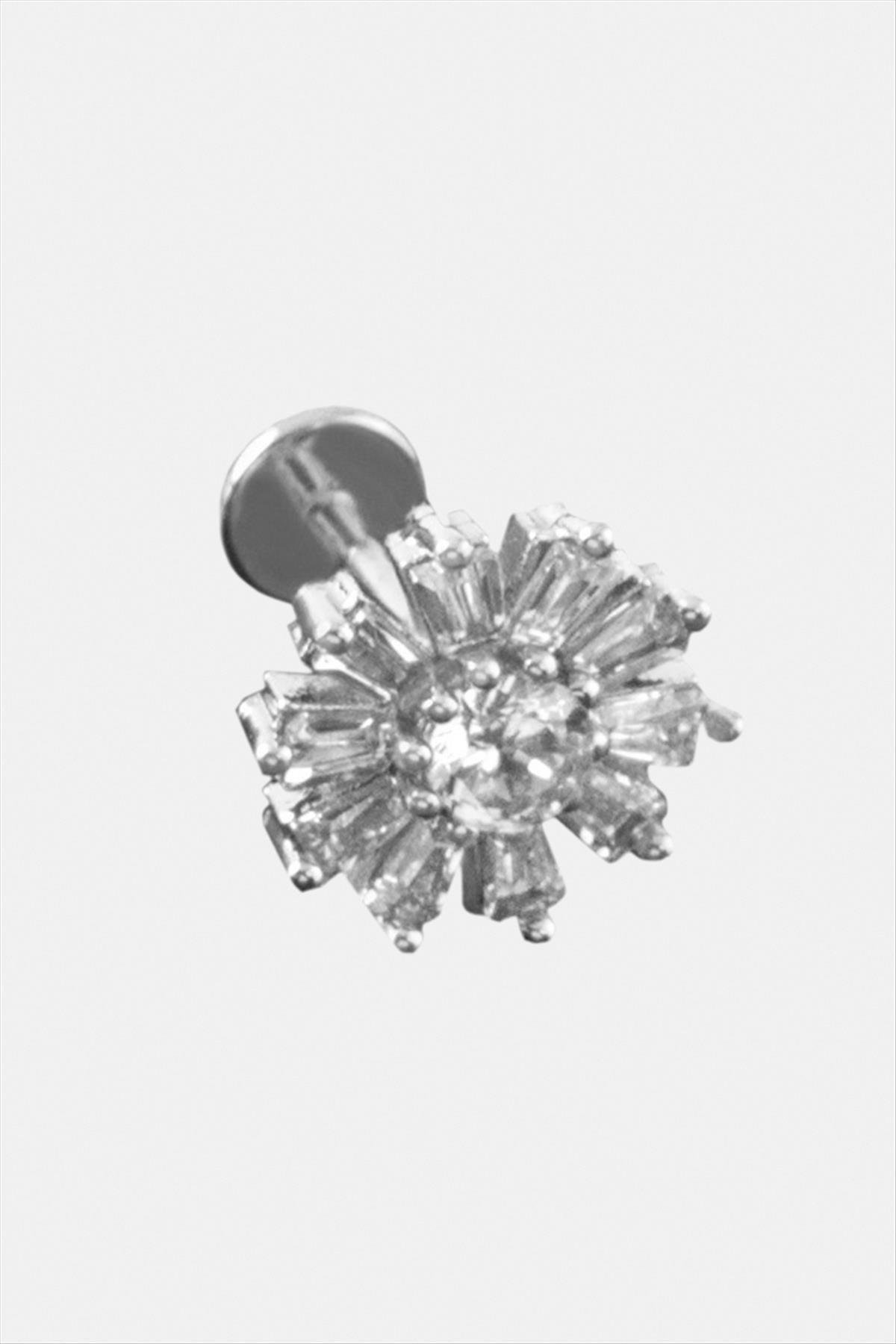Tragus Zirkon Taşlı Piercing 1 Adet-Gümüş Rengi