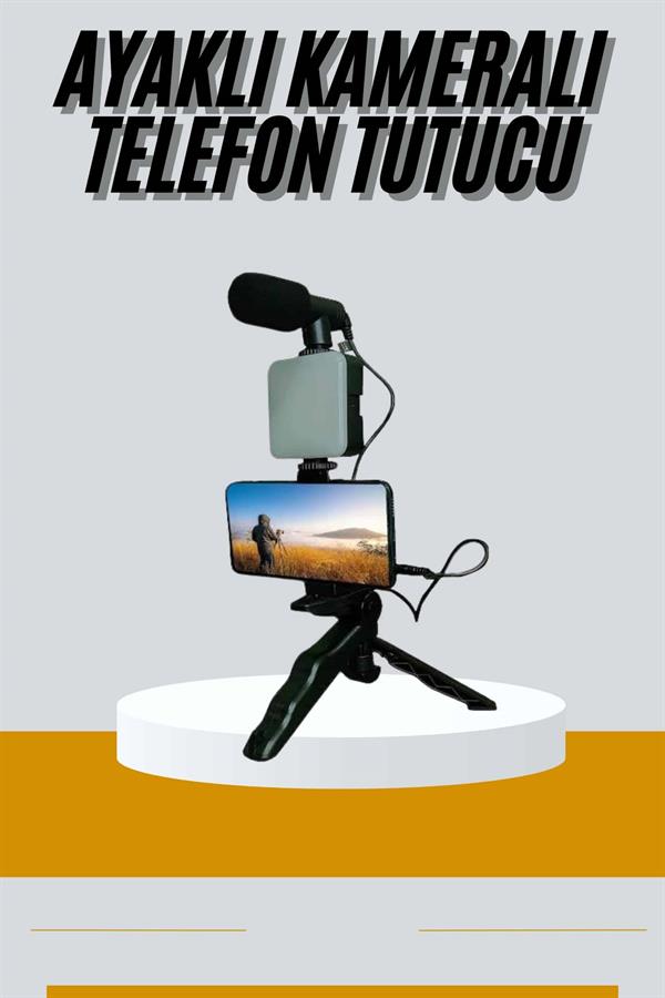 Tripod Telefon Tutucu Kumandalı Mikrofon Led Işık Vlog Video Kayıt