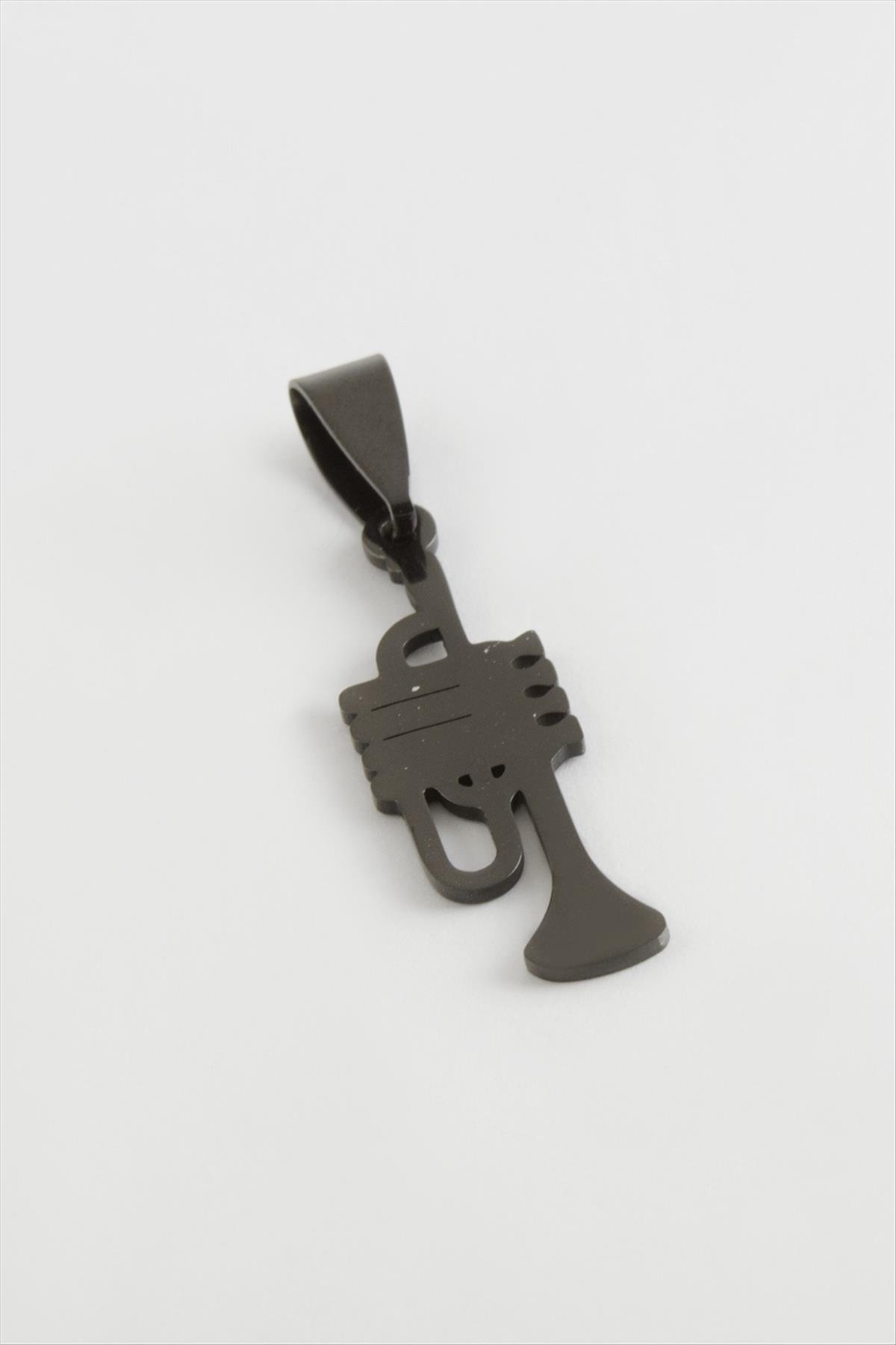 Trompet Çelik Kolye Ucu 3 cm-Siyah