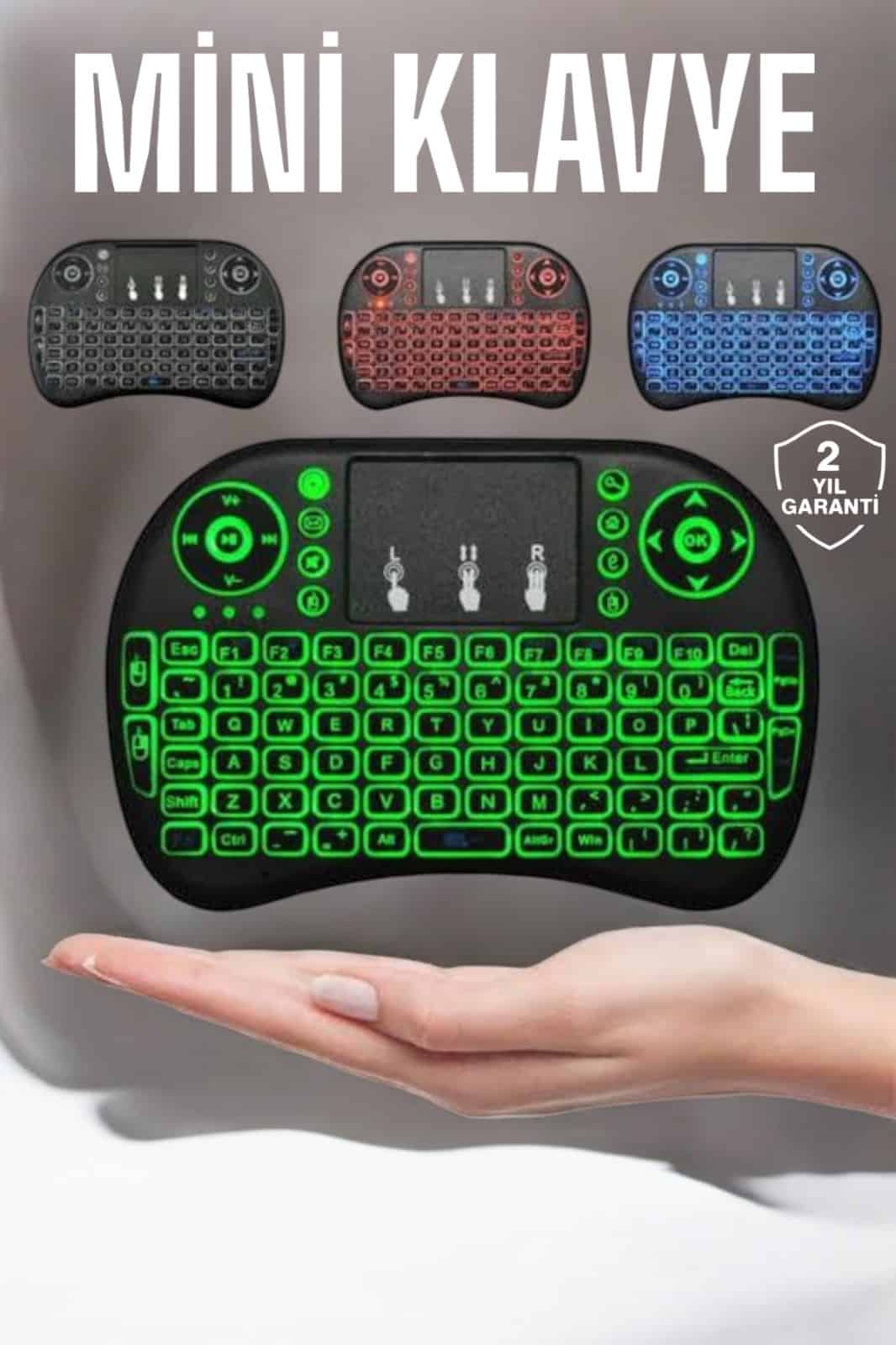 TV Uyumlu Mini Klavye Q Klavye Işıklı Tüm Cihazlara Uyumlu