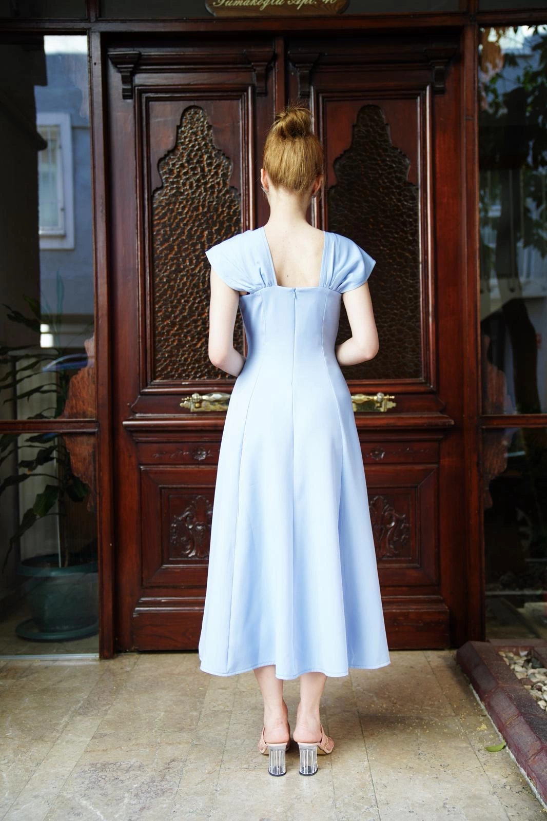 - Elbisenin bel kısmında yer alan kemer detayı, farklı bir hava katar.