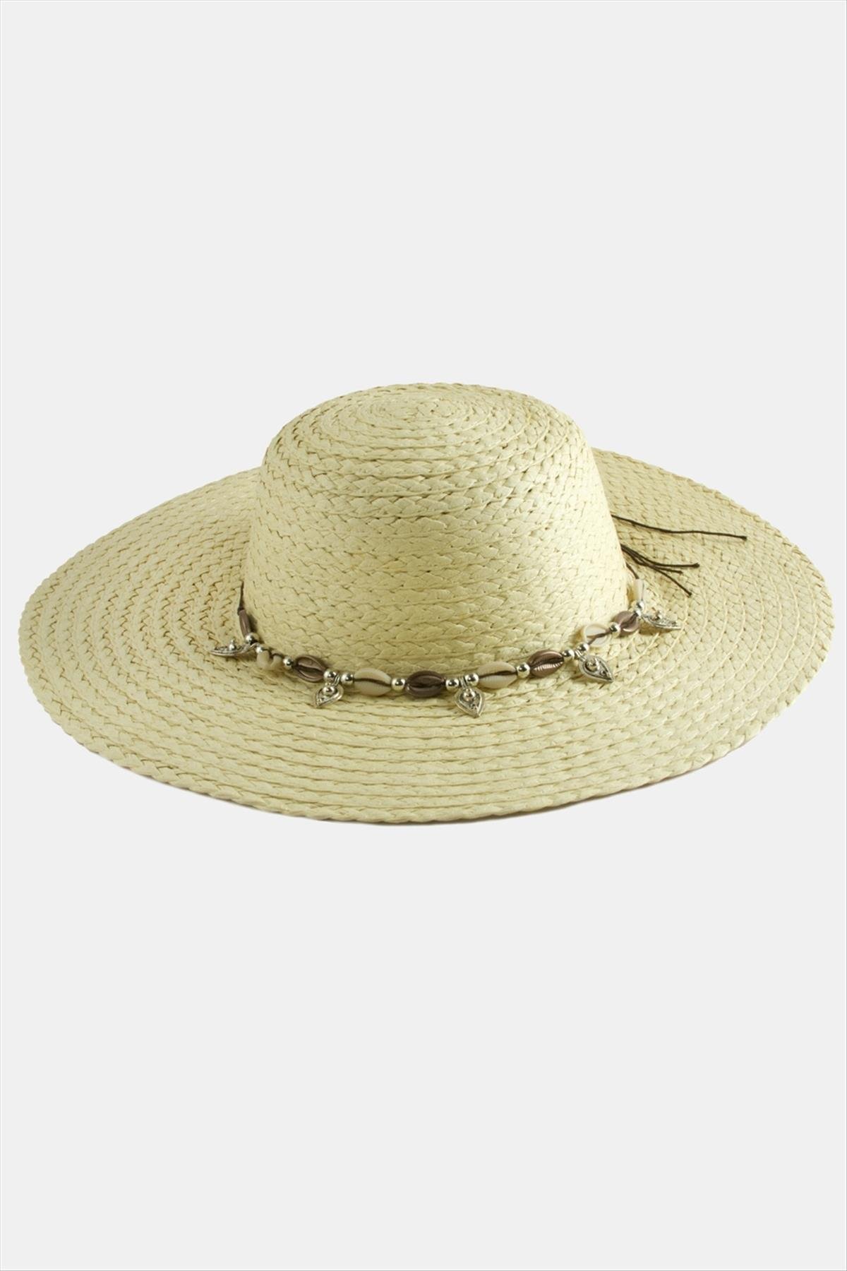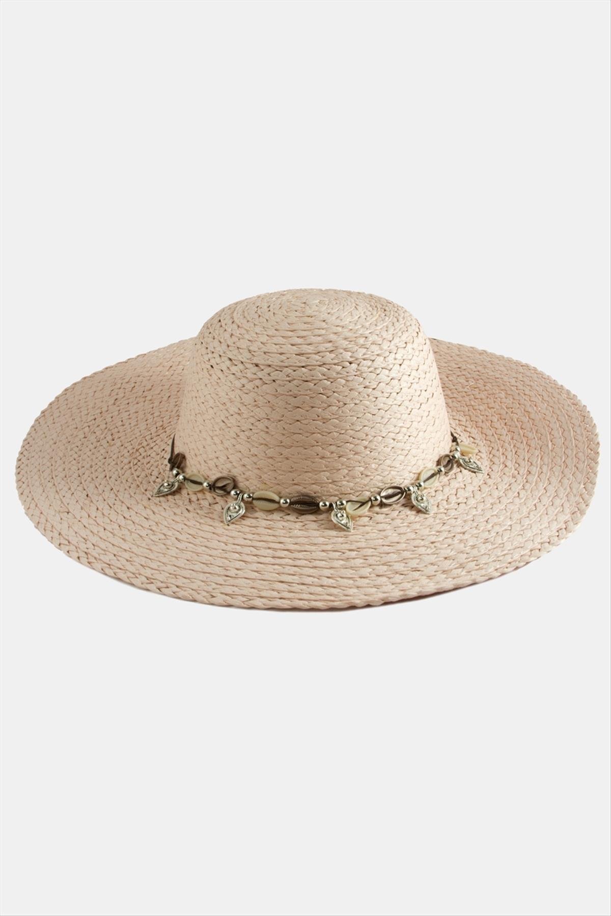 Üçgen Deniz Kabuğu Hasır Şapka-Bej