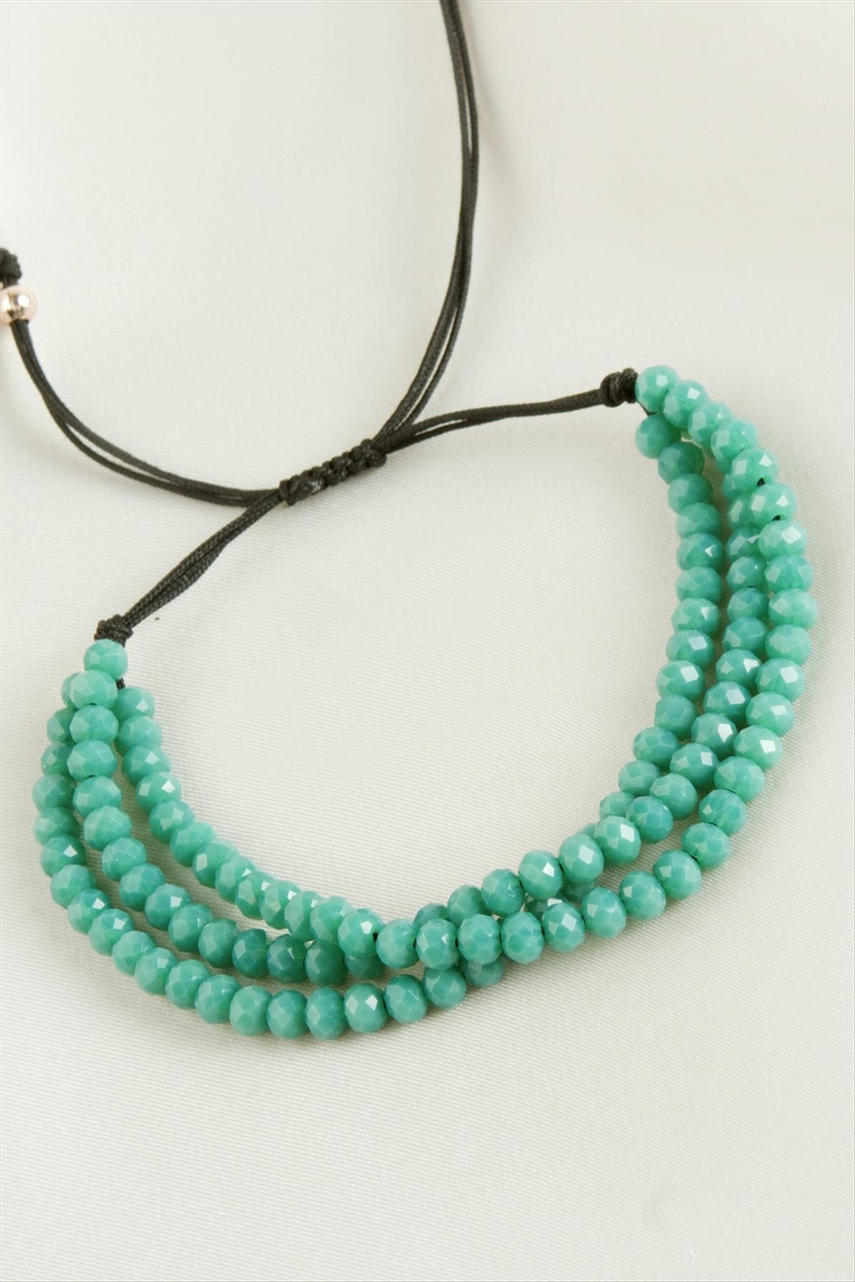 Bileklik; Ürün malzemesi makrome ip ve kristaldir. Ürün kartlıdır. Ürün asansörlüdür bileğe göre ayarlanabilir.