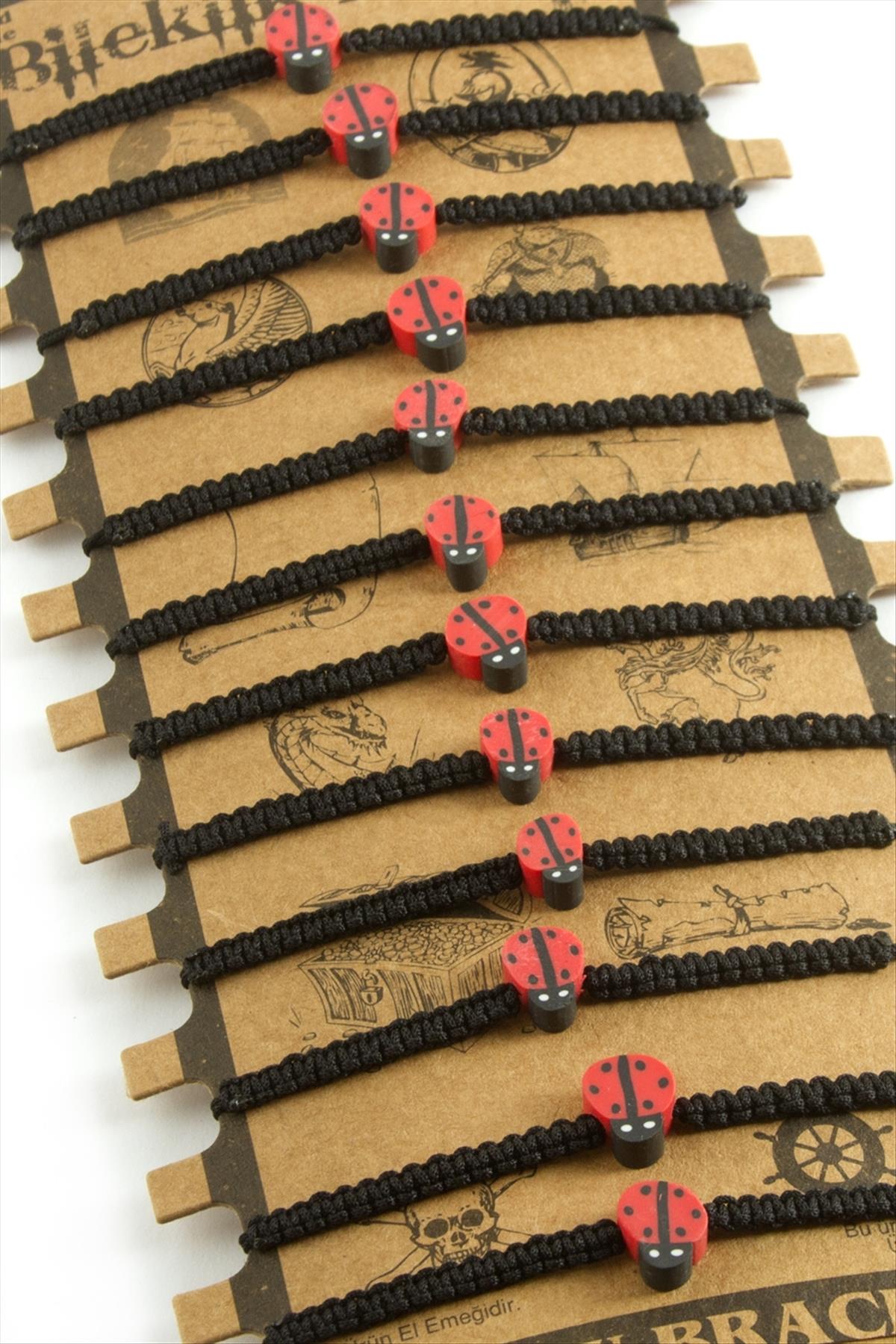 Uğur Böceği Makrome Örgülü Bileklik-Siyah