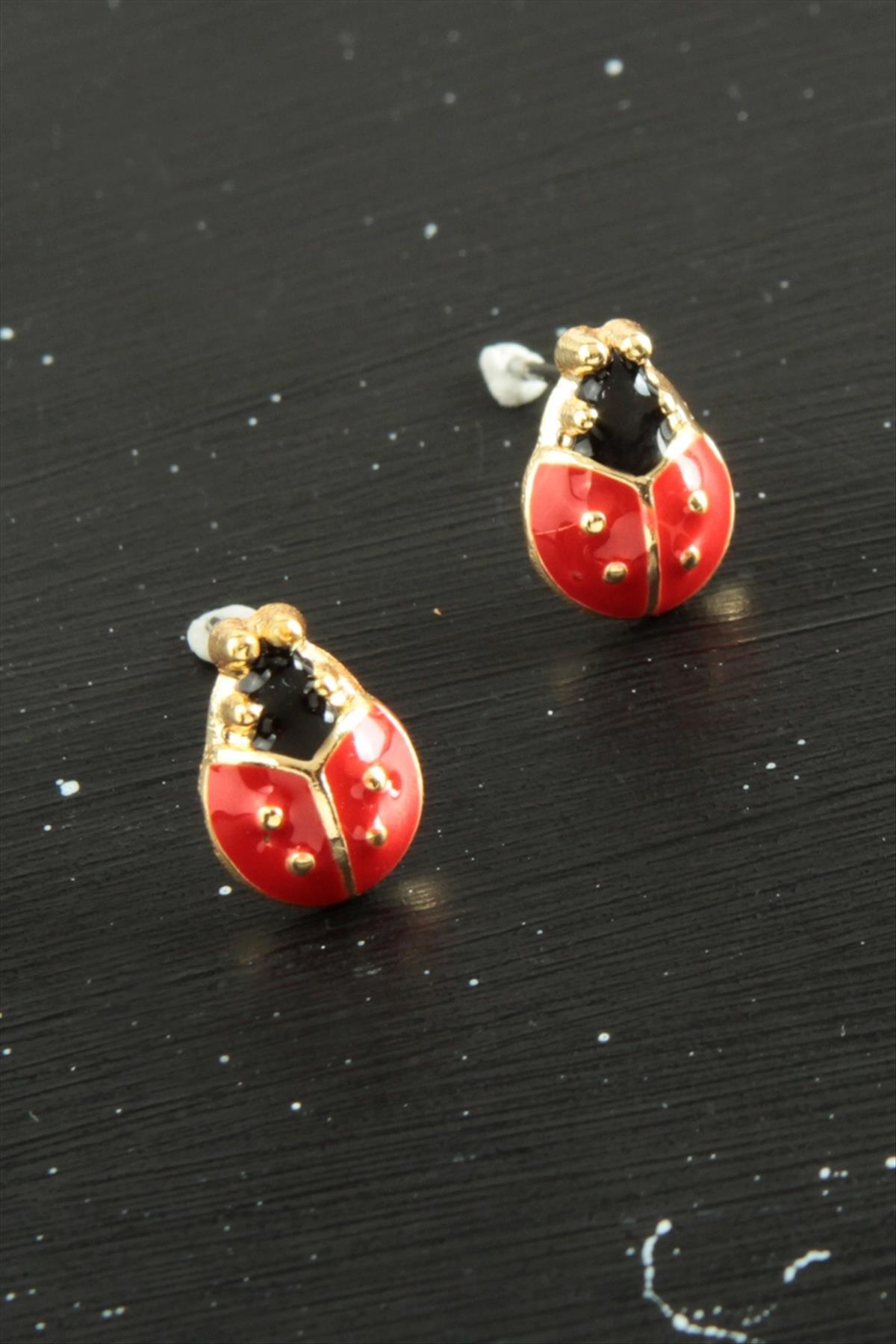 Uğur Böceği Mineli Minik Küpe-Kırmızı