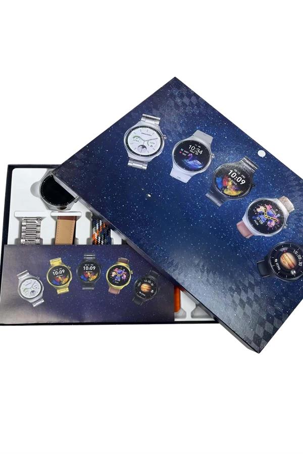 Unısex Yuvarlak Ekranlı 7 Kordonlu Akıllı Saat GPS Destekli Çoklu Kordon Seçeneği