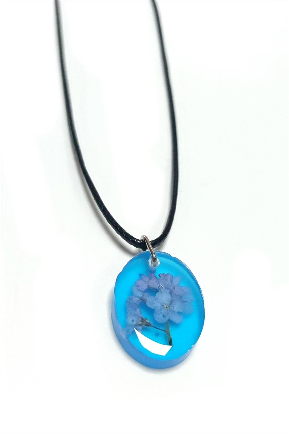 Unutma Beni Çiçeği Oval Epoksi Kolye-Mavi