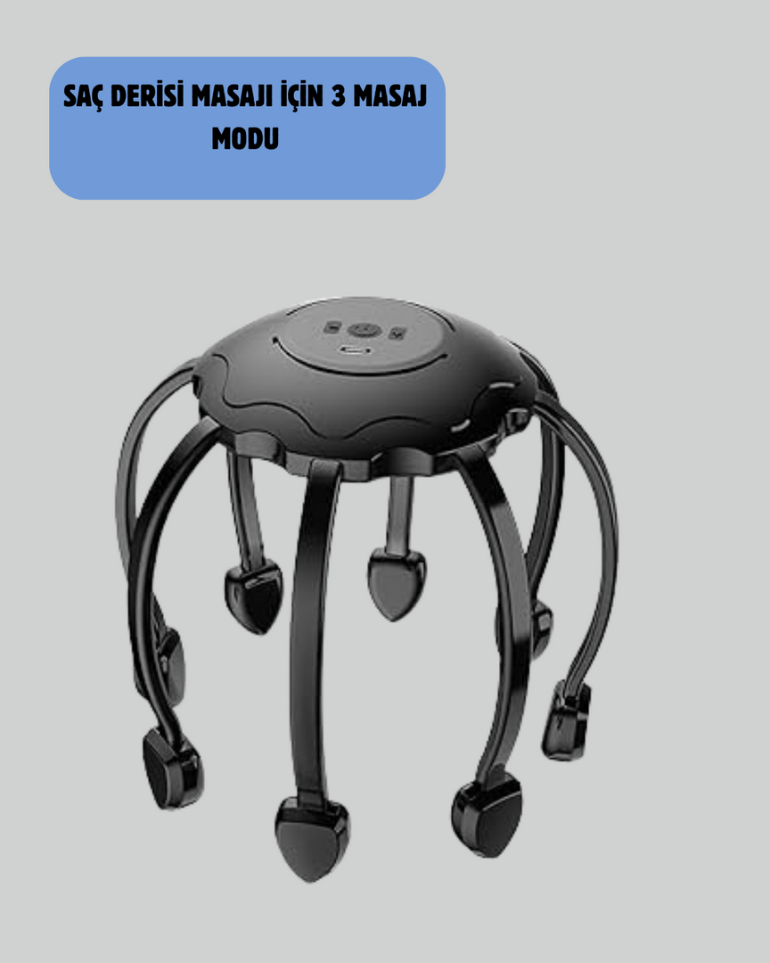 USB Şarjlı Kafa Masaj Aleti 3 Modlu 8 Başlıklı Stres Giderici