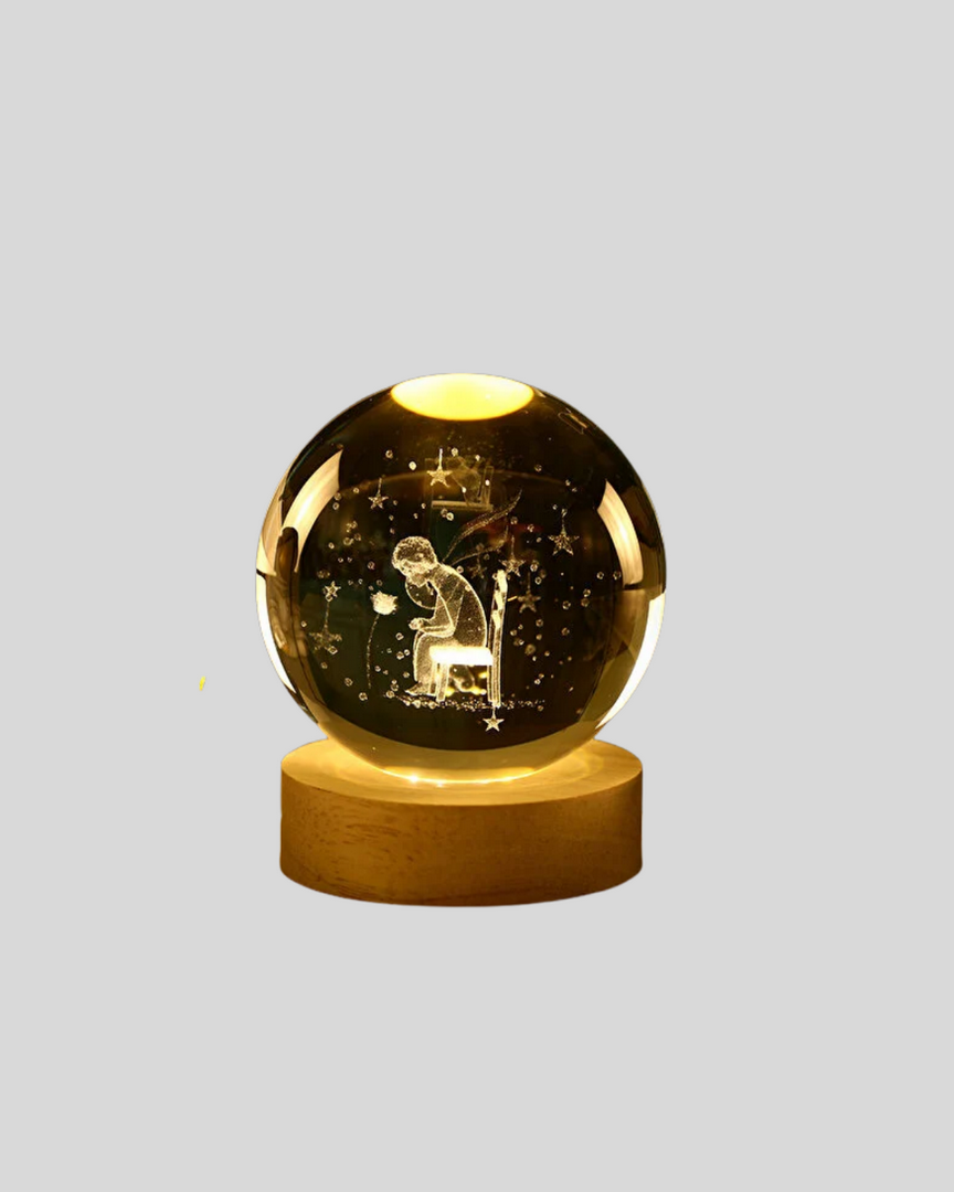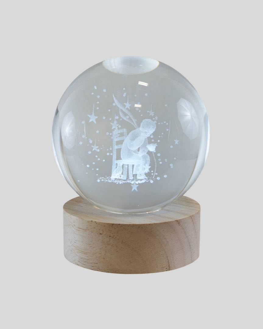 USB’li Küçük Prens Işıklı Cam Küre Ahşap Altlıklı Dekoratif Lamba