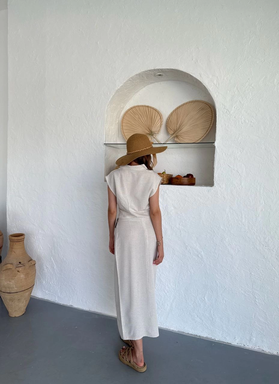 Uzun Etekli Bluz Takım Keten Krem S255852 (Beden: S)