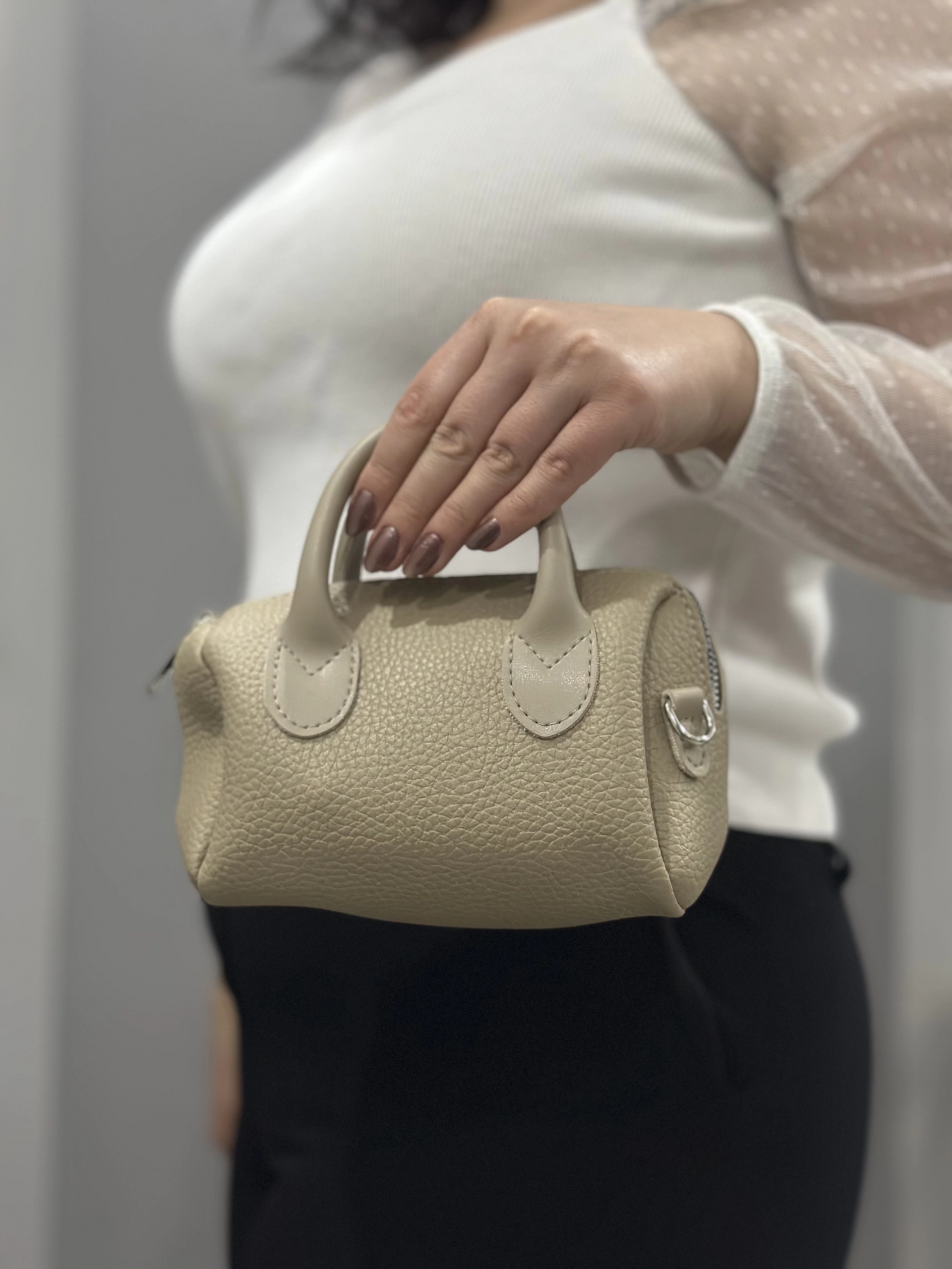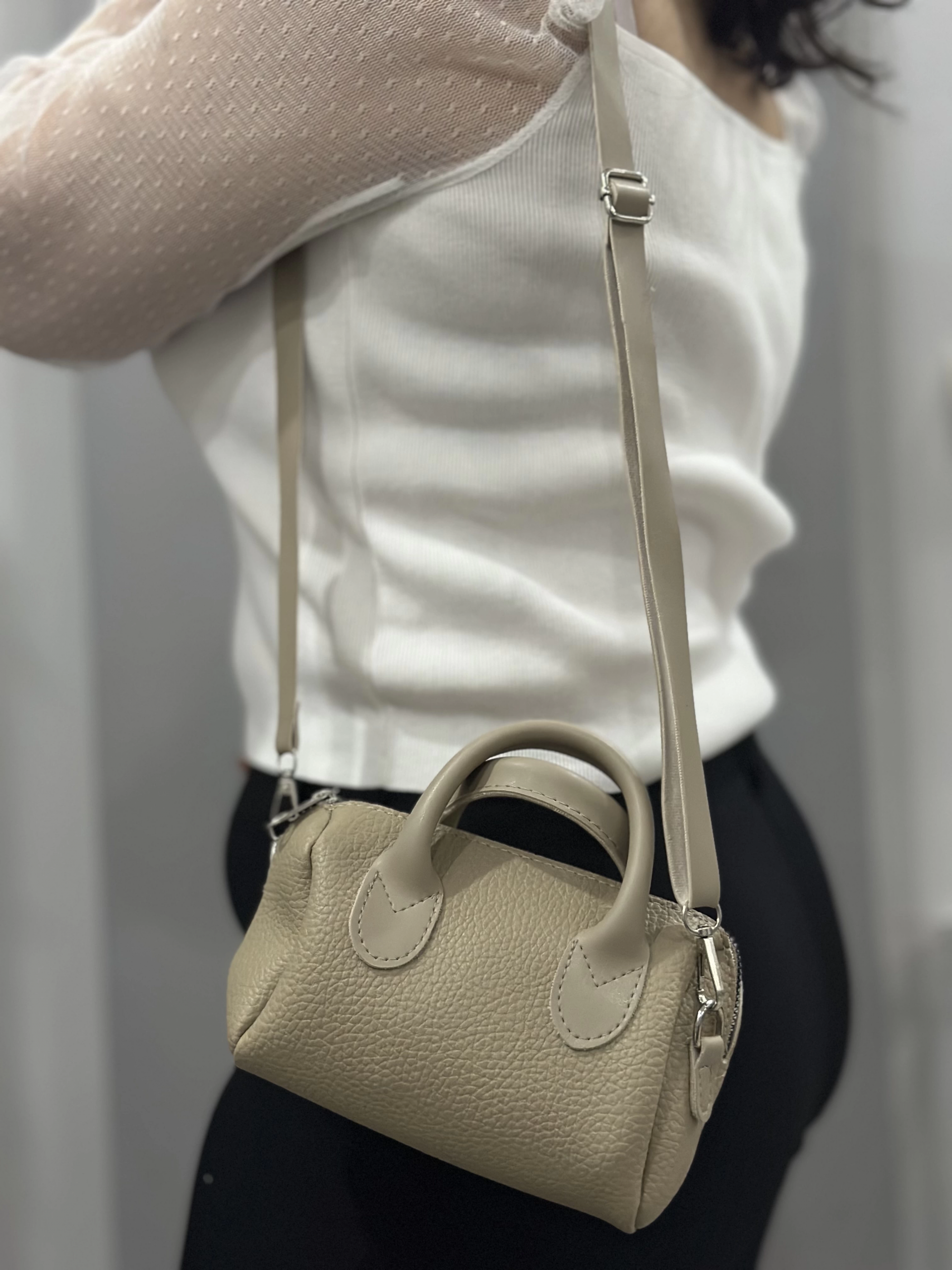 - Şık metal tokalı kısa askısı ve ayarlanabilir omuz askısı ile kullanım kolaylığı sağlar.
