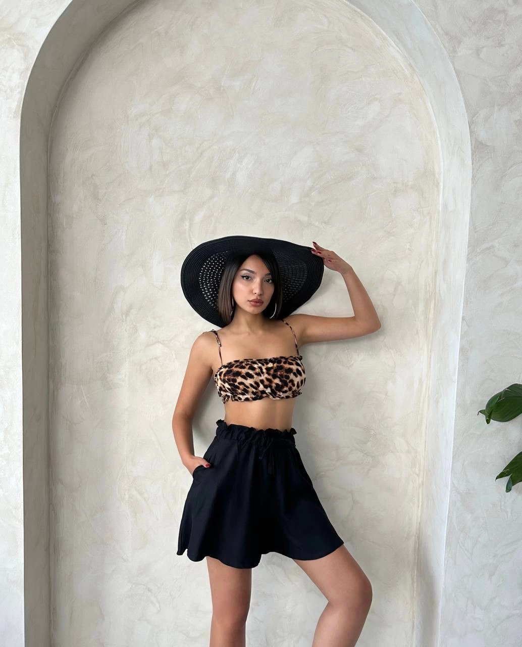 Omuz kısmında yer alan volan detayı ise şortu farklı kılarak tarzını ön plana çıkarır.