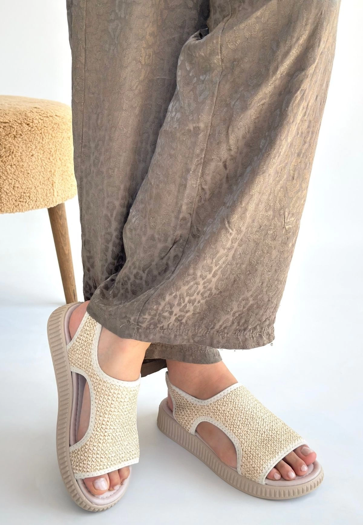 Wayi Bej Hasır Cilt Sandalet (Numara: 39)