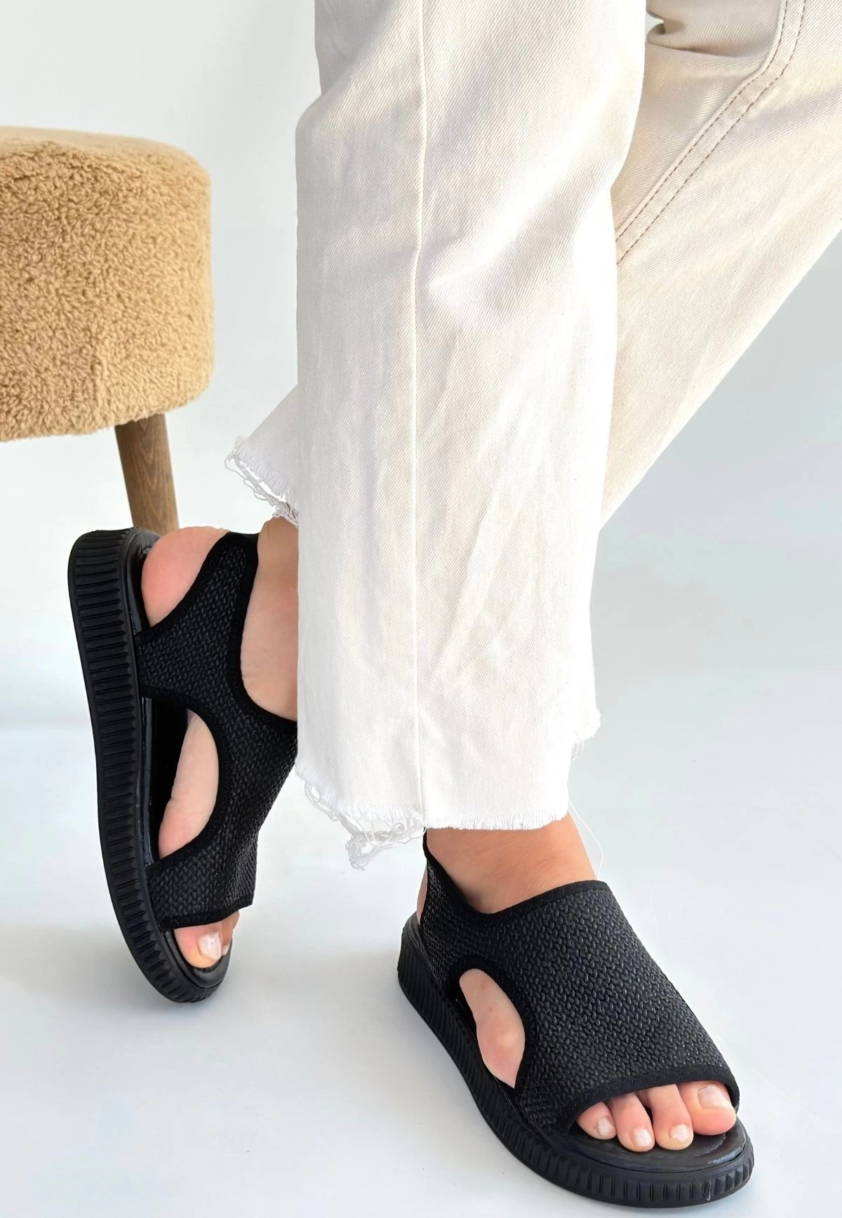 Wayi Siyah Hasır Cilt Sandalet (Numara: 39)