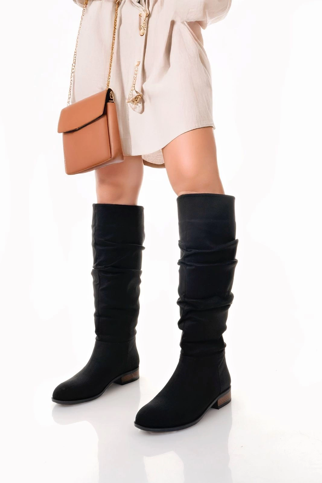 Winda Siyah Süet Körüklü Çizme (Numara: 38)