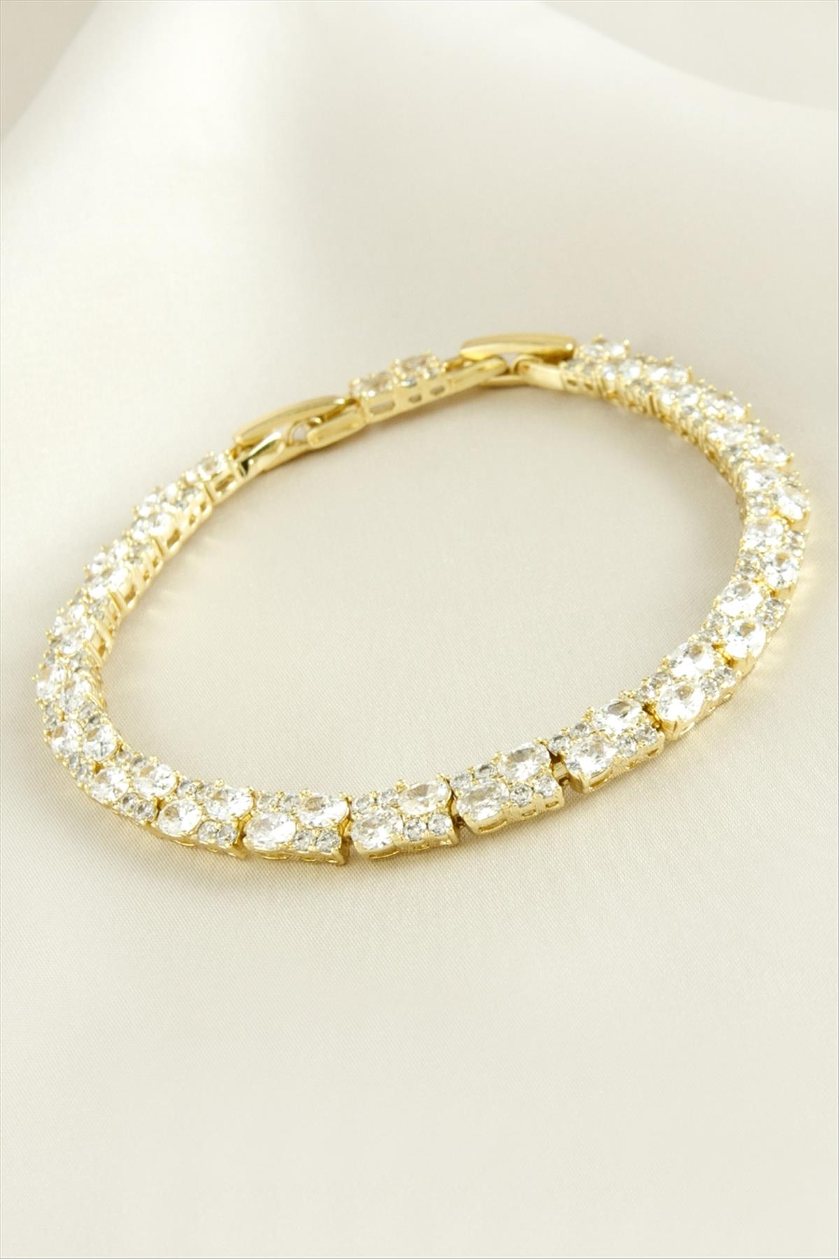 Xuping Dikdörtgen Zirkon Taşlı Lüks Çelik Bileklik-Sarı