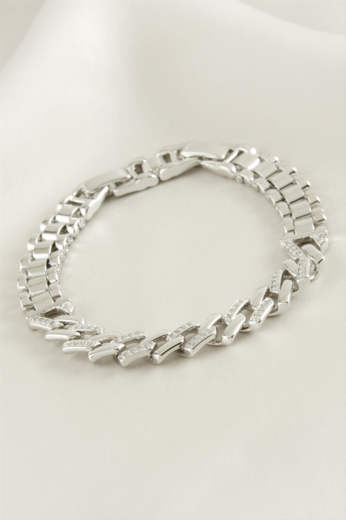 Xuping Zikzak Zirkon Taşlı Lüks Çelik Bileklik