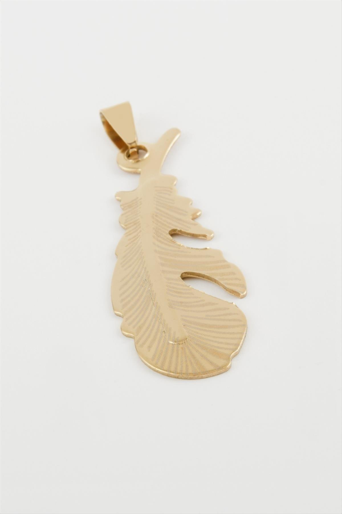 Yaprak Çelik Kolye Ucu 5 cm-Sarı
