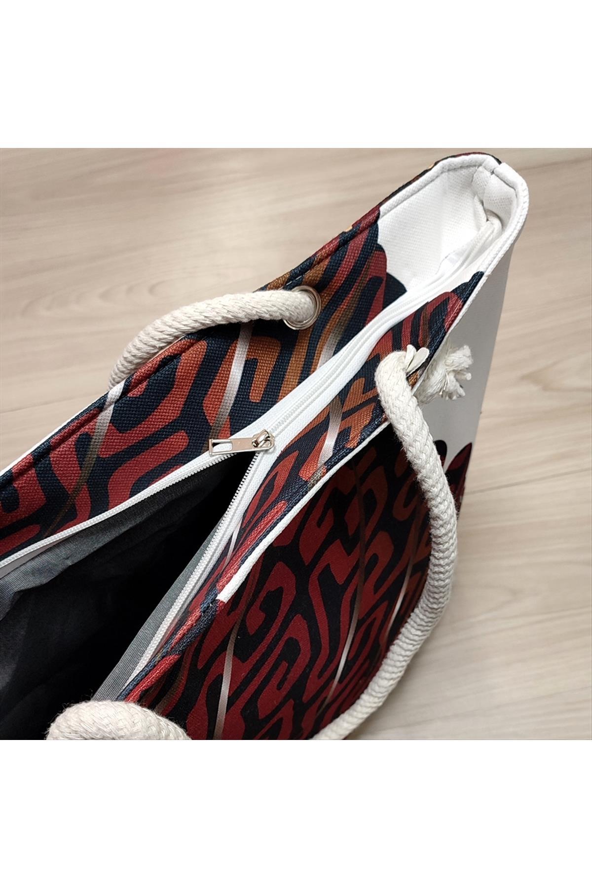Çanta; Ürün malzemesi imperteks petek kumaştır. Ürün su geçirmez içi eva astarla kaplıdır. Ürün boyu 9X45X48 cm dir. Birinci sınıf kaliteli malzemeden üretilmiştir. Taşıma kısmı halat modelli ip ve fermuarlıdır.