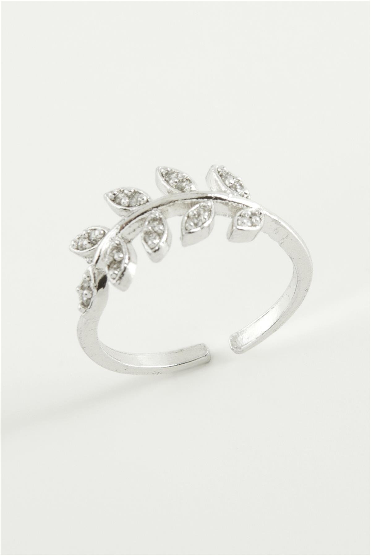 Yaprak Zirkon Taşlı Yüzük-Gümüş Rengi