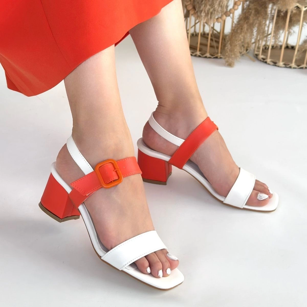 Year Beyaz Cilt Turuncu Detaylı Topuklu Ayakkabı (Numara: 40)