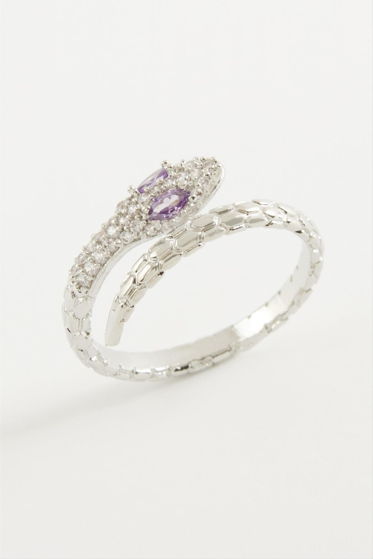 Yılan Zirkon Taşlı Yüzük-Gümüş Rengi