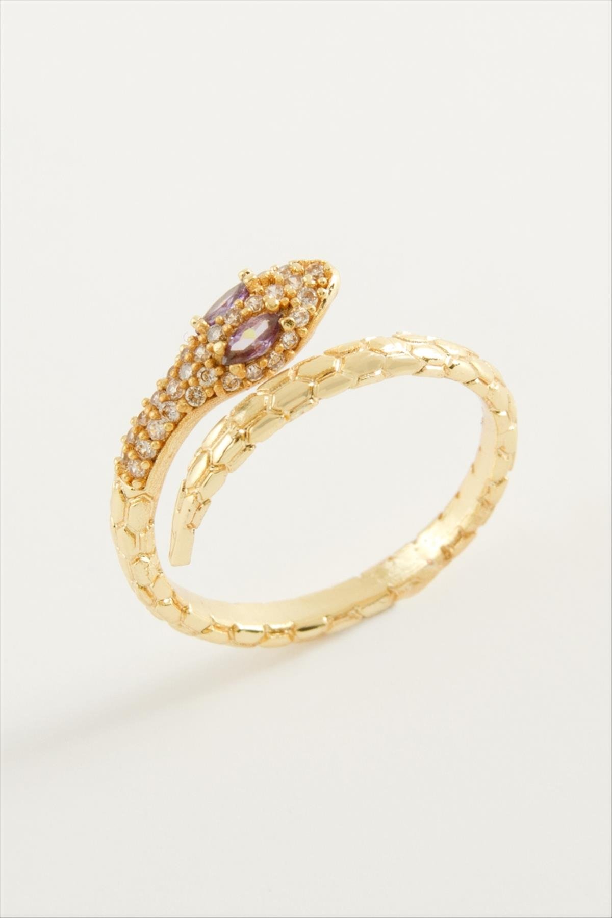 Yılan Zirkon Taşlı Yüzük-Sarı