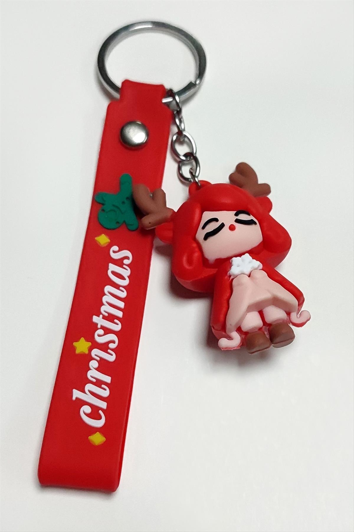 Yılbaşı Geyik Silikon Anahtarlık-Kırmızı