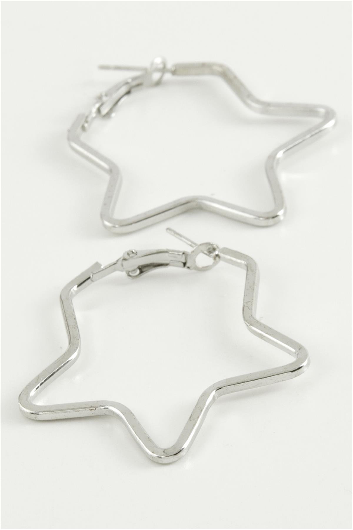 Yıldız Halka Küpe 4,5 cm-Gümüş Rengi
