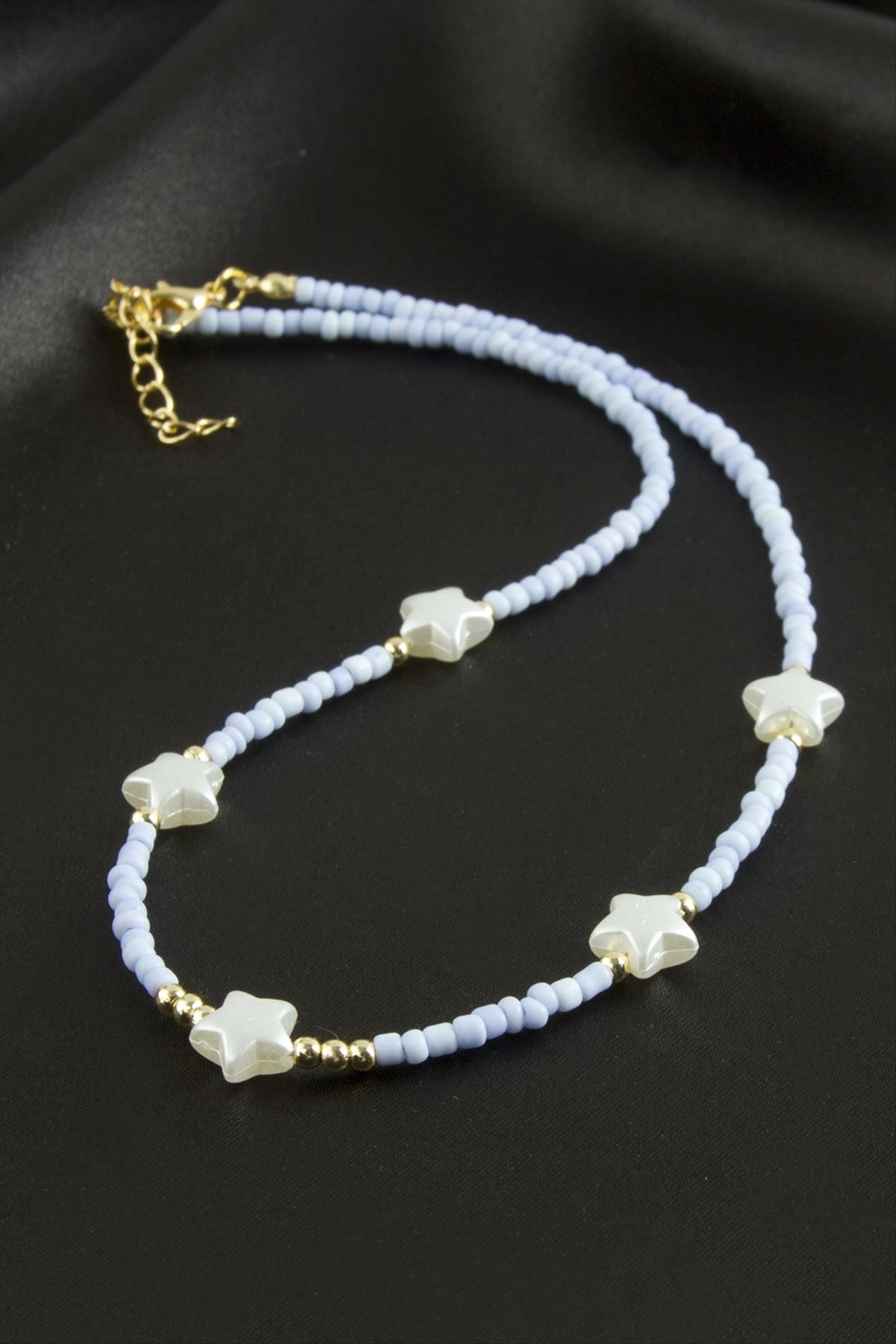 Yıldız İnci Kum Boncuk Kolye-Açık Mavi