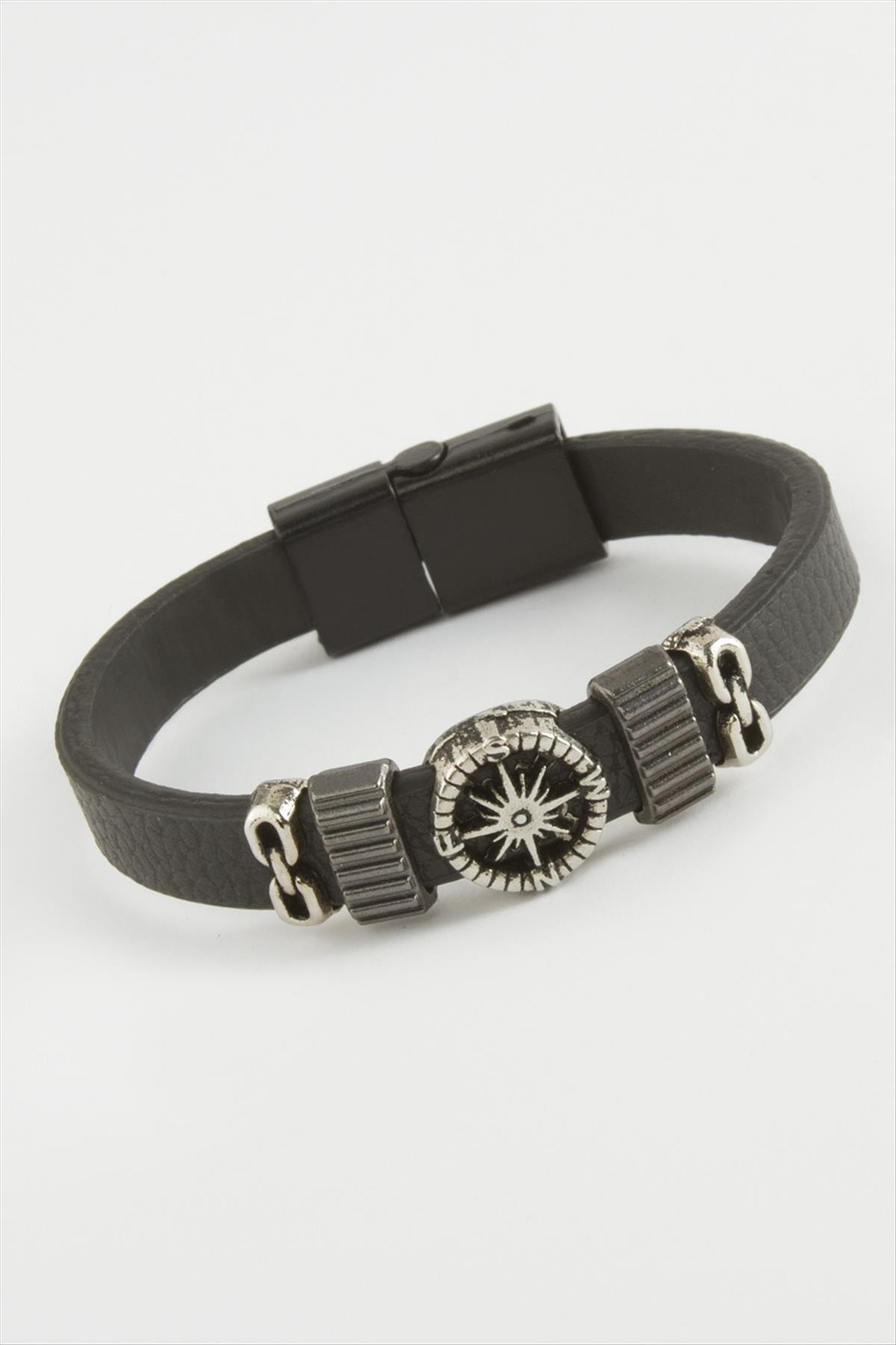 Yıldız Kaliteli Mıknatıslı Suni Deri Bileklik-Siyah