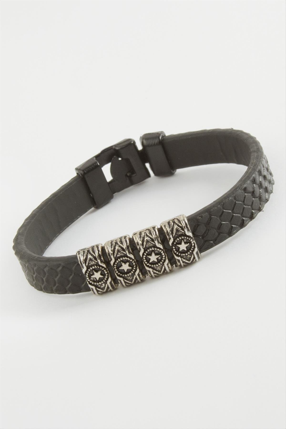 Yıldız Kaliteli Suni Deri Bileklik-Siyah