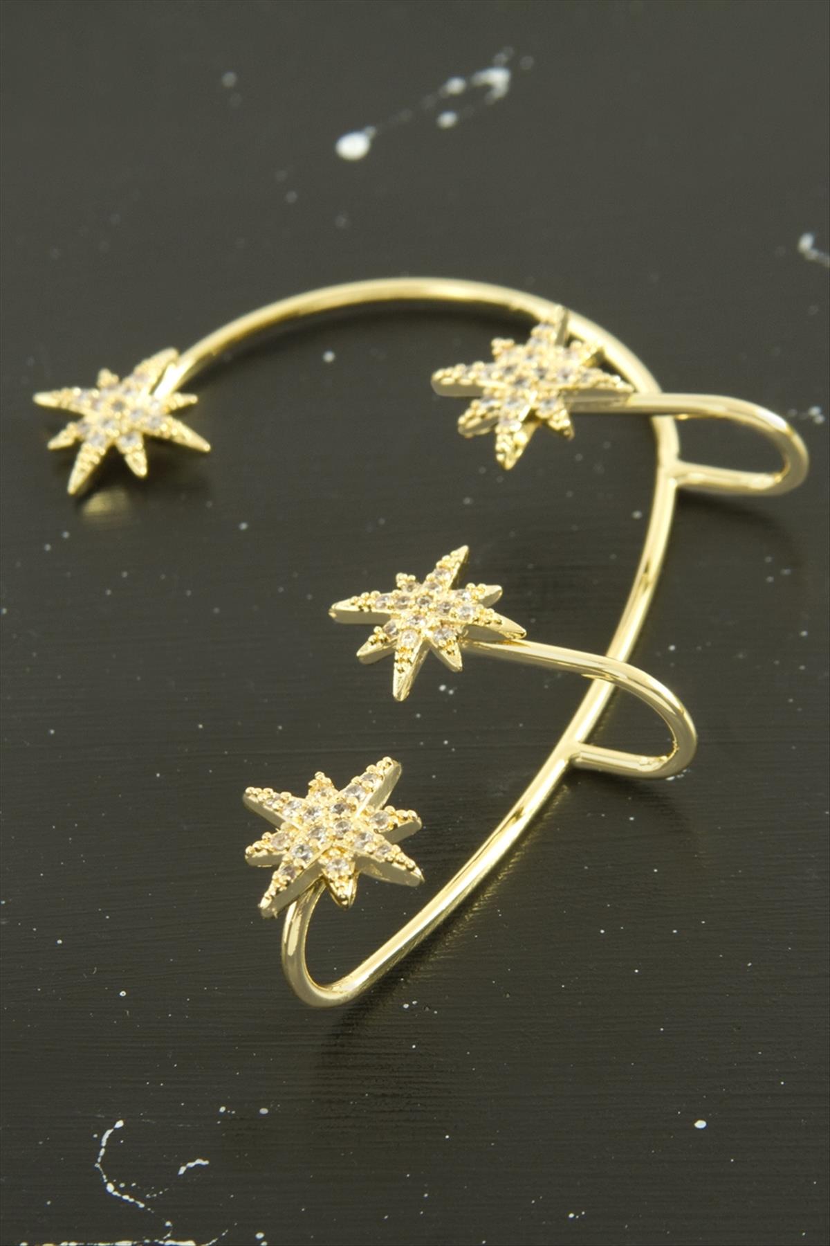 Yıldız Zirkon Taşlı Lüks Çelik Kıkırdak Küpe 1 Adet-Sarı