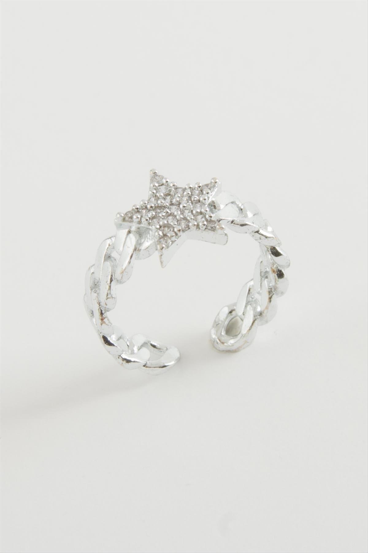 Yıldız Zirkon Taşlı Yüzük-Gümüş Rengi