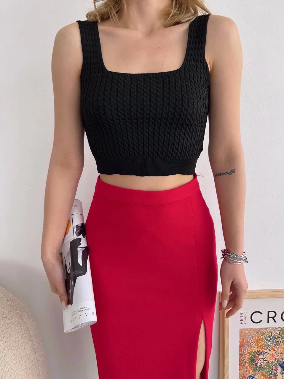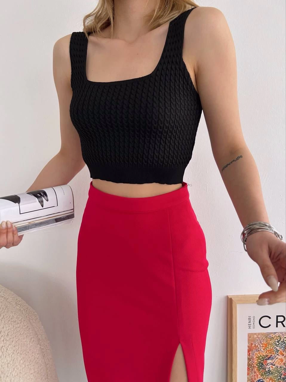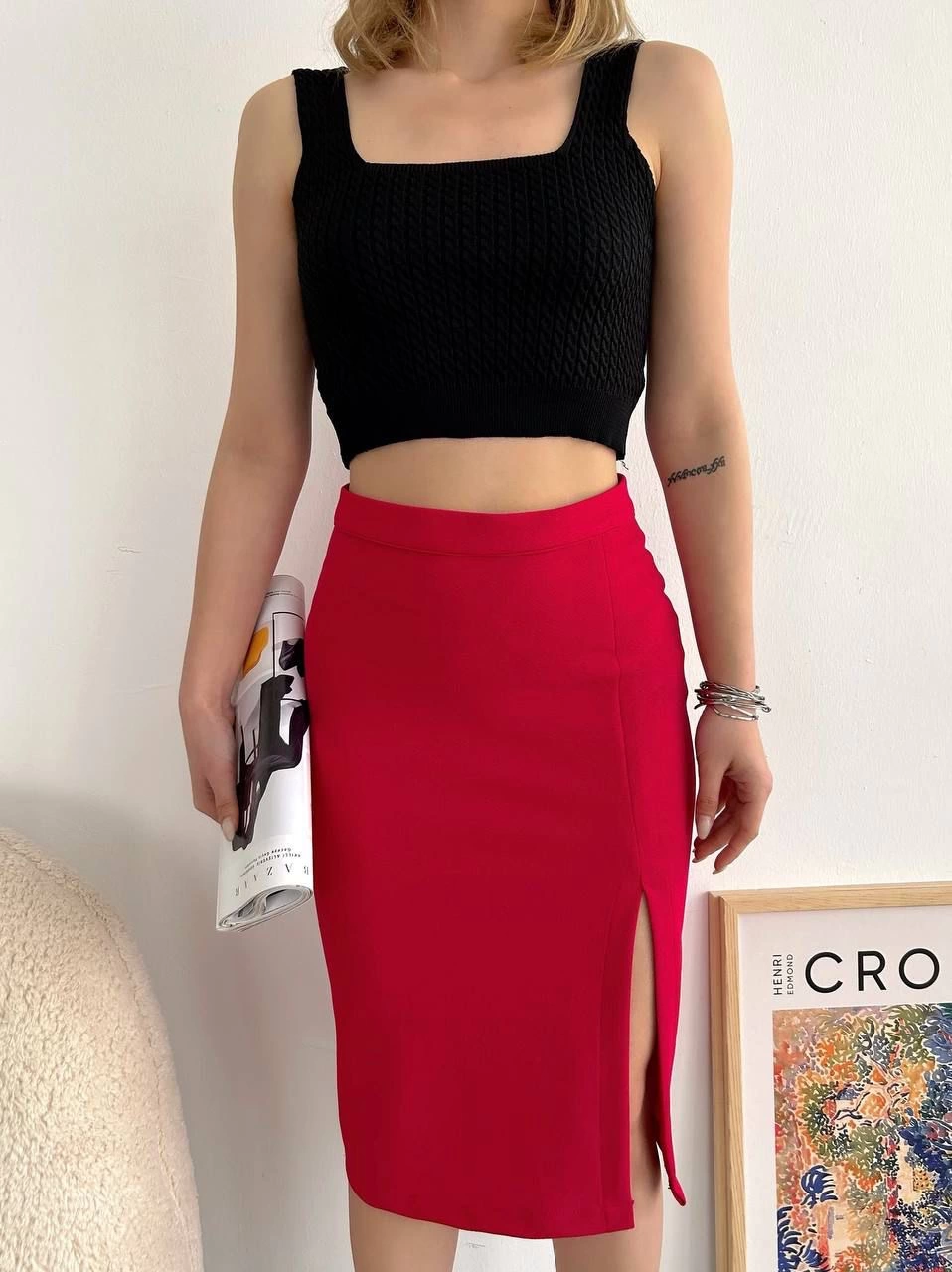 Yırtmaçlı esnek kumaş midi boy etek kırmızı, gardırobunuzda modern ve şık bir seçenek sunuyor. İster günlük hayatta isterseniz özel davetlerde rahatlıkla tercih edebileceğiniz bu etek, hem şıklığı hem de konforu bir arada sunar.