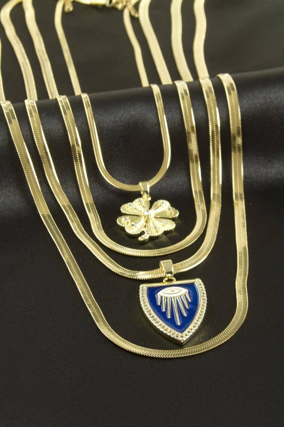 Yonca İtalyan Zincirli Lüks Çelik Kolye 4 Adet-Sarı