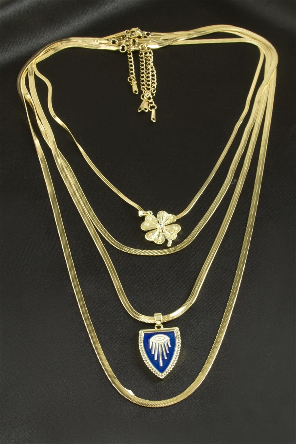 Yonca İtalyan Zincirli Lüks Çelik Kolye 4 Adet