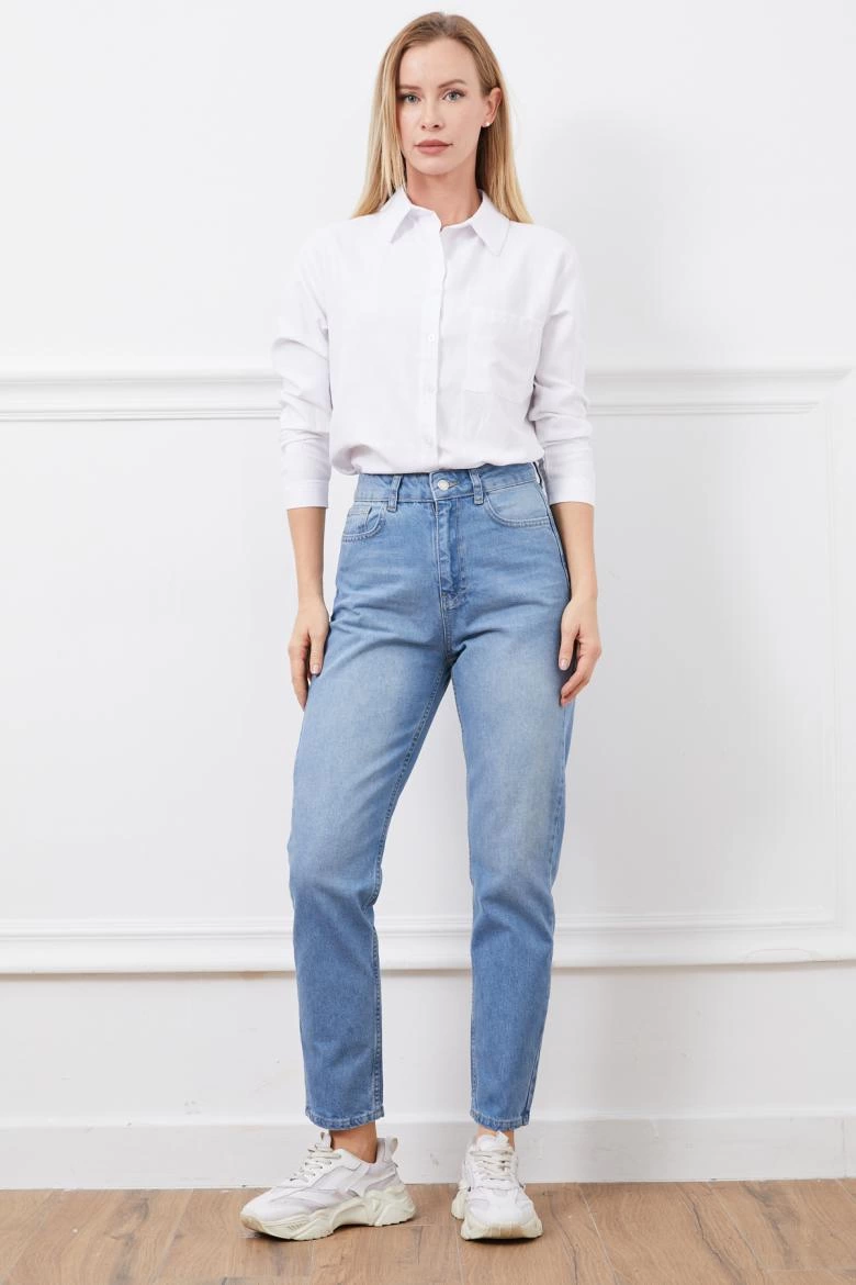 Yüksek bel mom jean pantolon Mavi (Beden: 36)