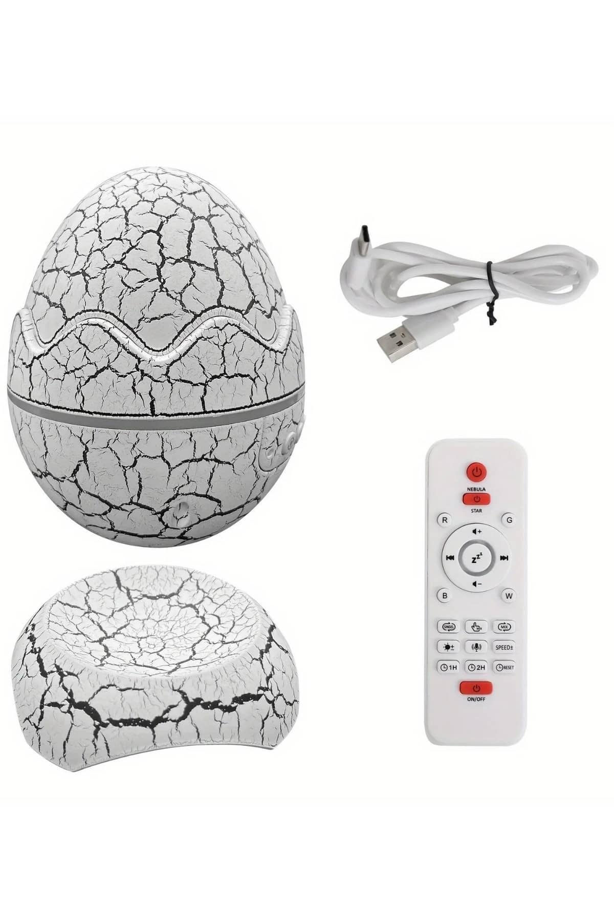 Evdeki her ortamı büyülü bir atmosfere dönüştürmek artık çok kolay! Dinazor Yumurtası tasarımı, odanızı kocaman bir uzay alanına çevirebilmenizi sağlar. Yıldızlarla dolu bir gökyüzüne bakarak, hayal gücünüzü özgür bırakabilirsiniz. Ürünün şık ve ilgi çekici tasarımı, sadece işlevsel değil, aynı zamanda evinize görsel olarak da zarif bir dokunuş ekler. Sadece bir düğmeye basarak, dönen projektörün sağladığı 7 farklı sis türü ve farklı hız ve parlaklık ayarlarıyla ışık gösterisinin keyfini çıkarabilirsiniz.