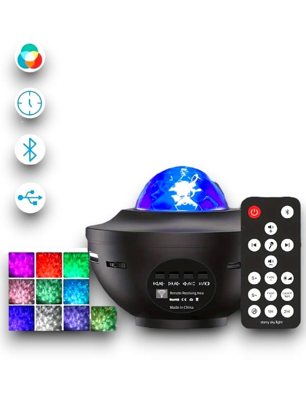 * Bluetooth hoparlörler ve zamanlayıcılar: favori müziğinizi Bluetooth veya USBüzerinden seçebilirsiniz. Yüksek kaliteli müzik ve yıldızlı projeksiyonlar geceromantik ve yatıştırıcı bir ortam yaratır. Zamanlayıcı seçeneği daha enerjiverimli, ayrıca tüm gece ışığını da atabilirsiniz.