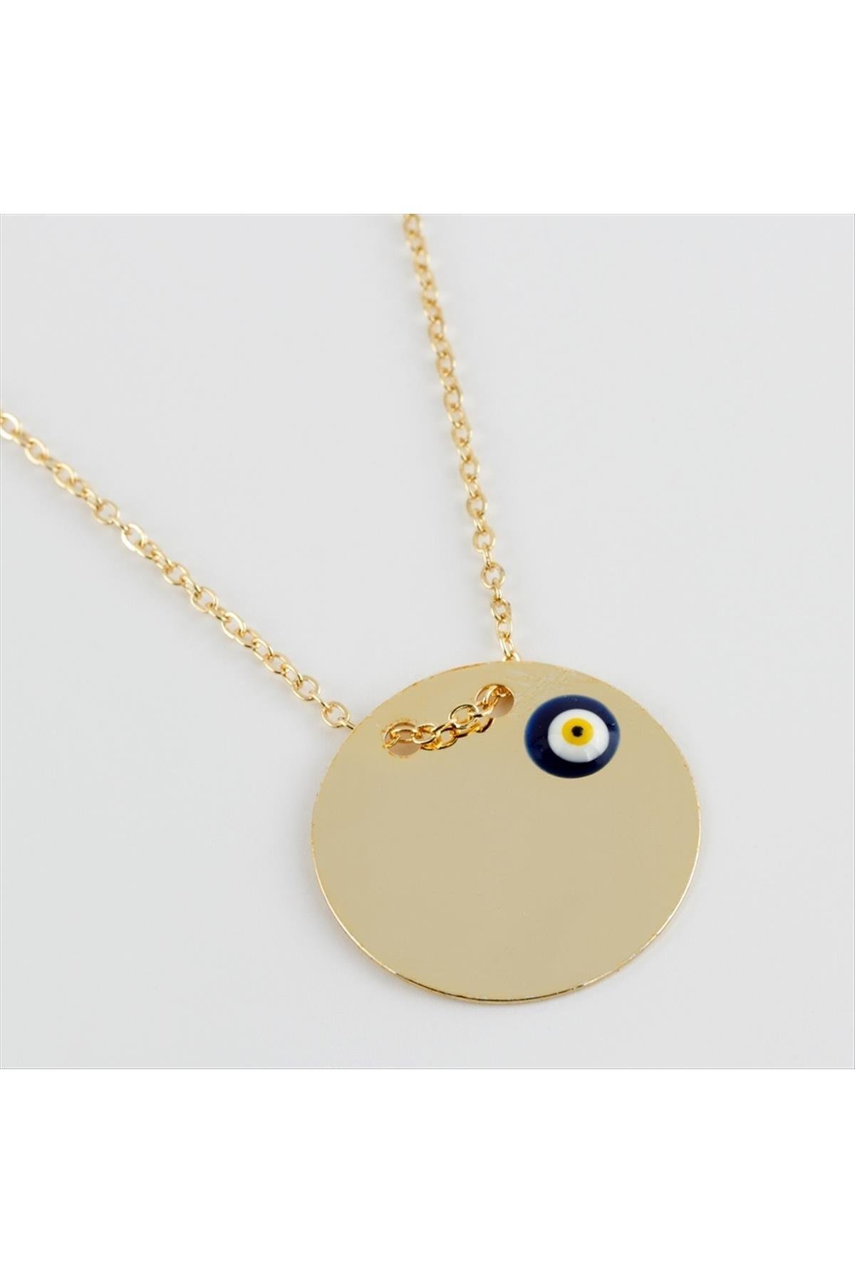 Yuvarlak İsim Yazılabilir Boş Plaka Kolye-Sarı