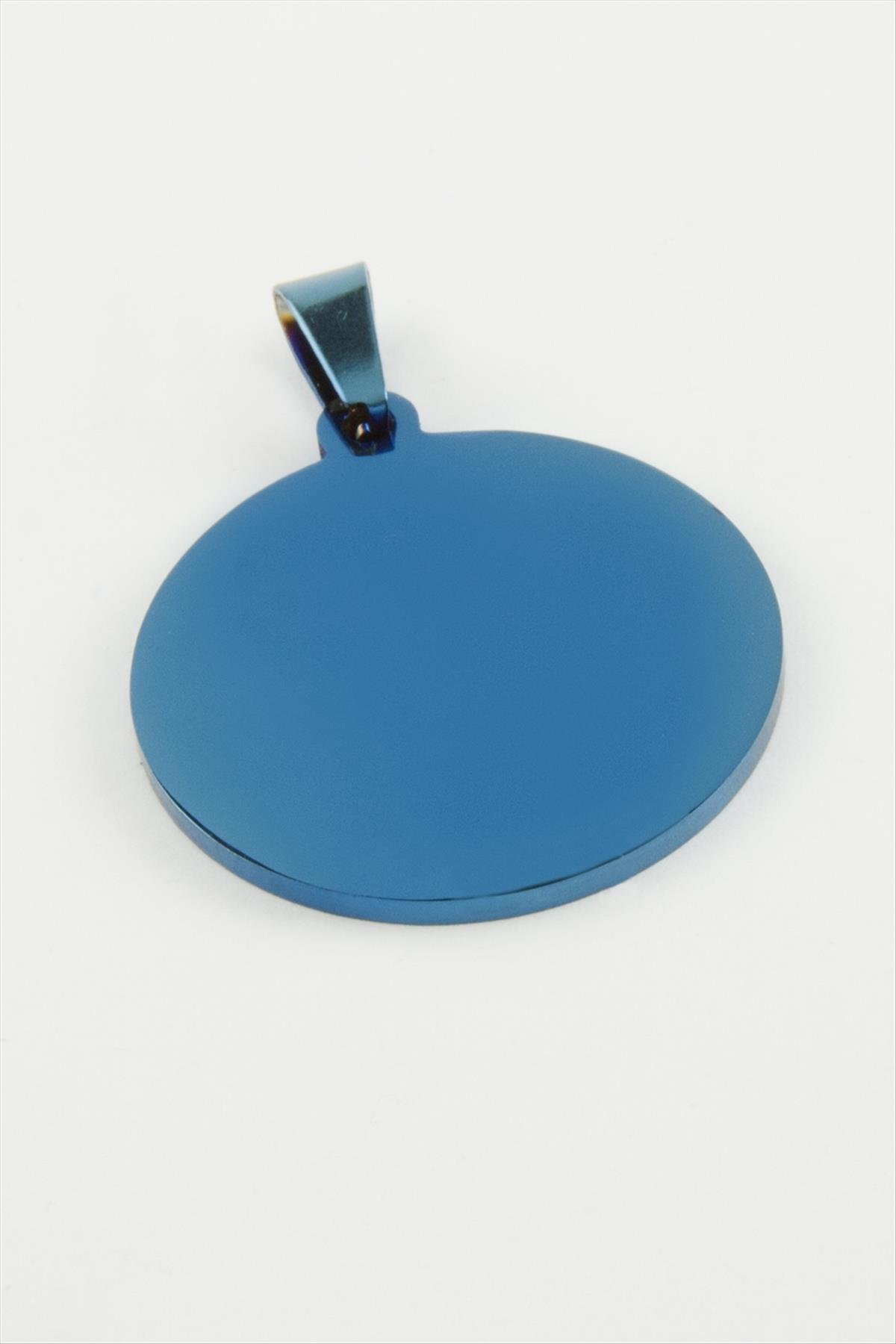 Yuvarlak İsim Yazılabilir Çelik Kolye Ucu 2,5 cm-Mavi