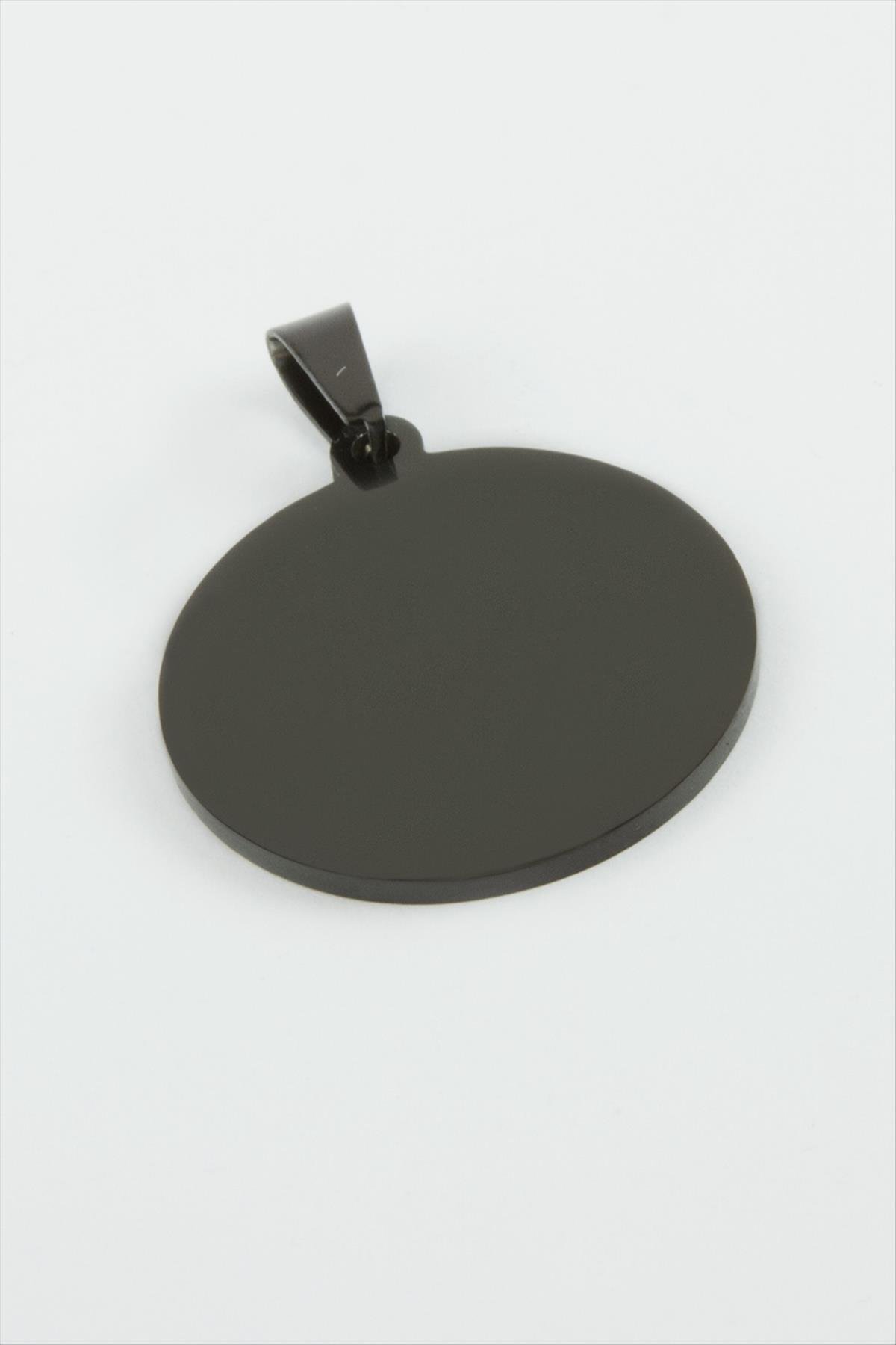 Yuvarlak İsim Yazılabilir Çelik Kolye Ucu 2,5 cm-Siyah