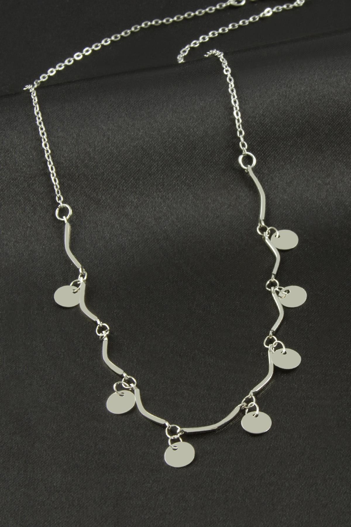 Yuvarlak Pullu Şans Kolye-Gümüş Rengi