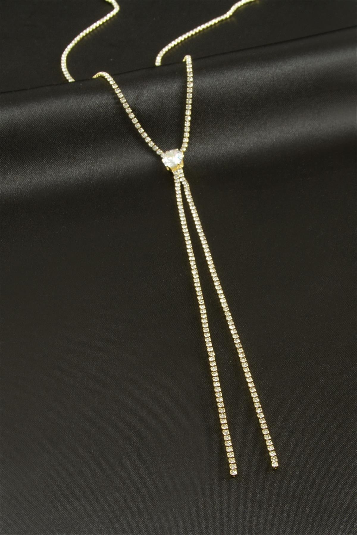 Yuvarlak Şerit Taşlı Çelik Y Kolye-Sarı