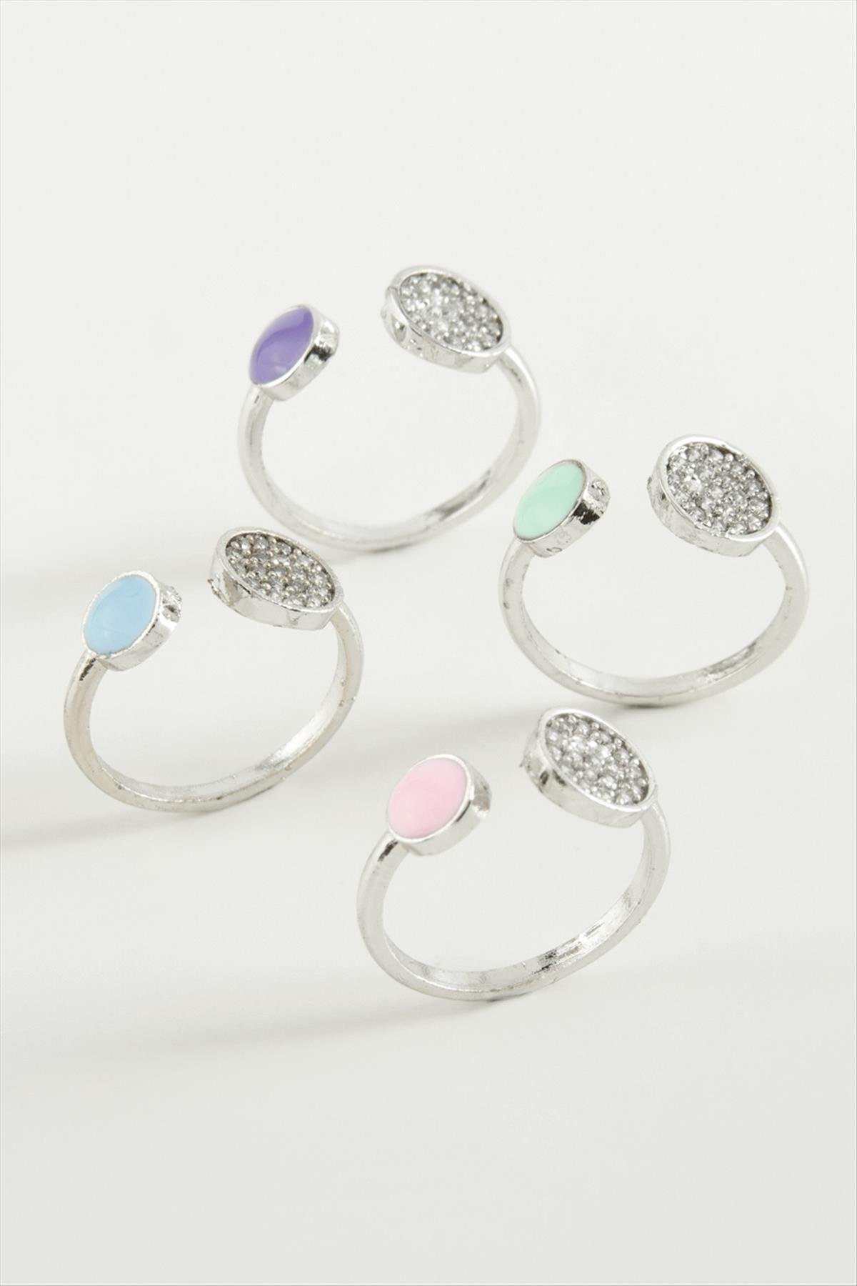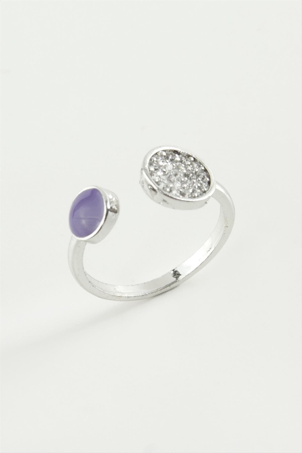 Yuvarlak Taşlı Mineli Eklem Yüzük-Gümüş Rengi