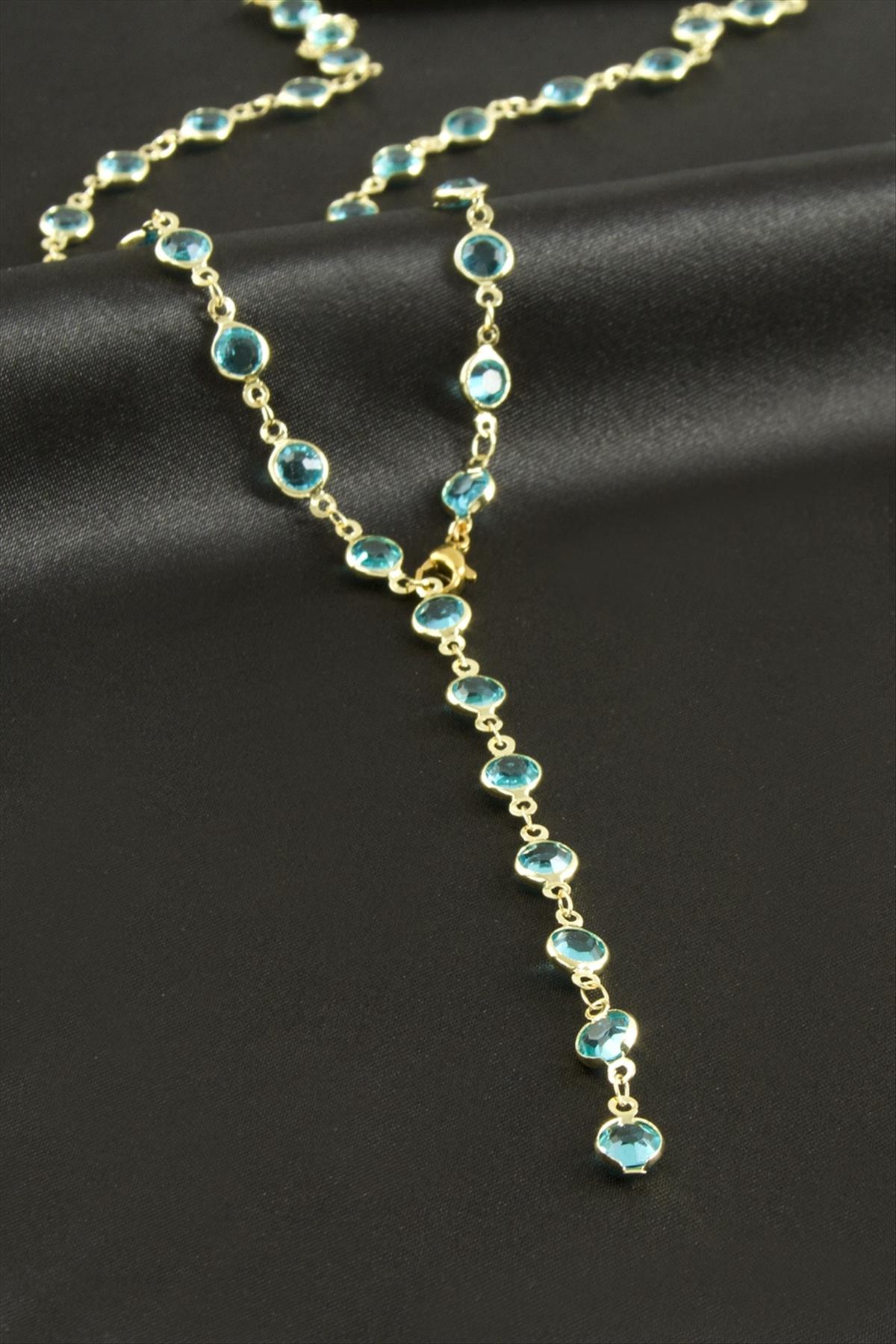Yuvarlak Zirkon Taşlı Çelik Y Kolye-Açık Mavi