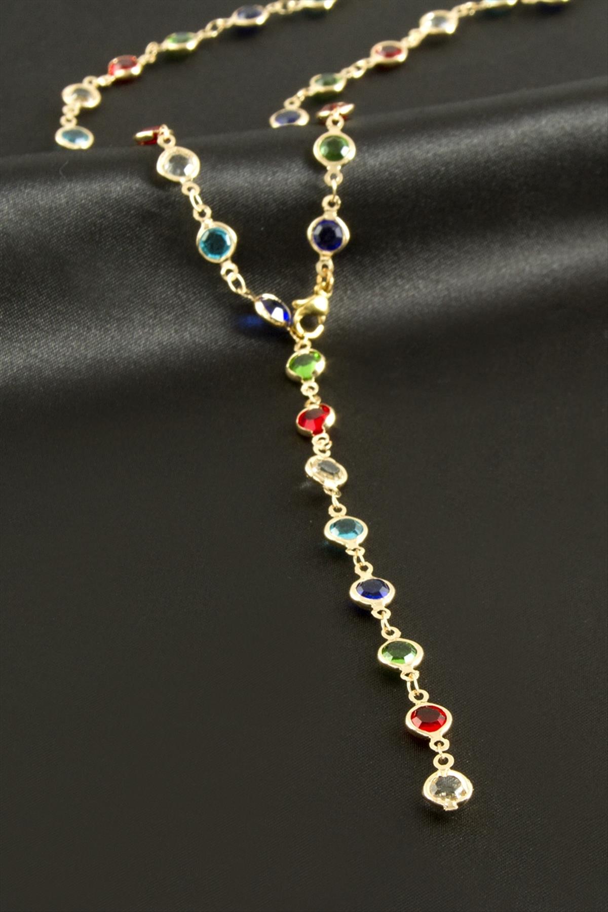 Yuvarlak Zirkon Taşlı Çelik Y Kolye